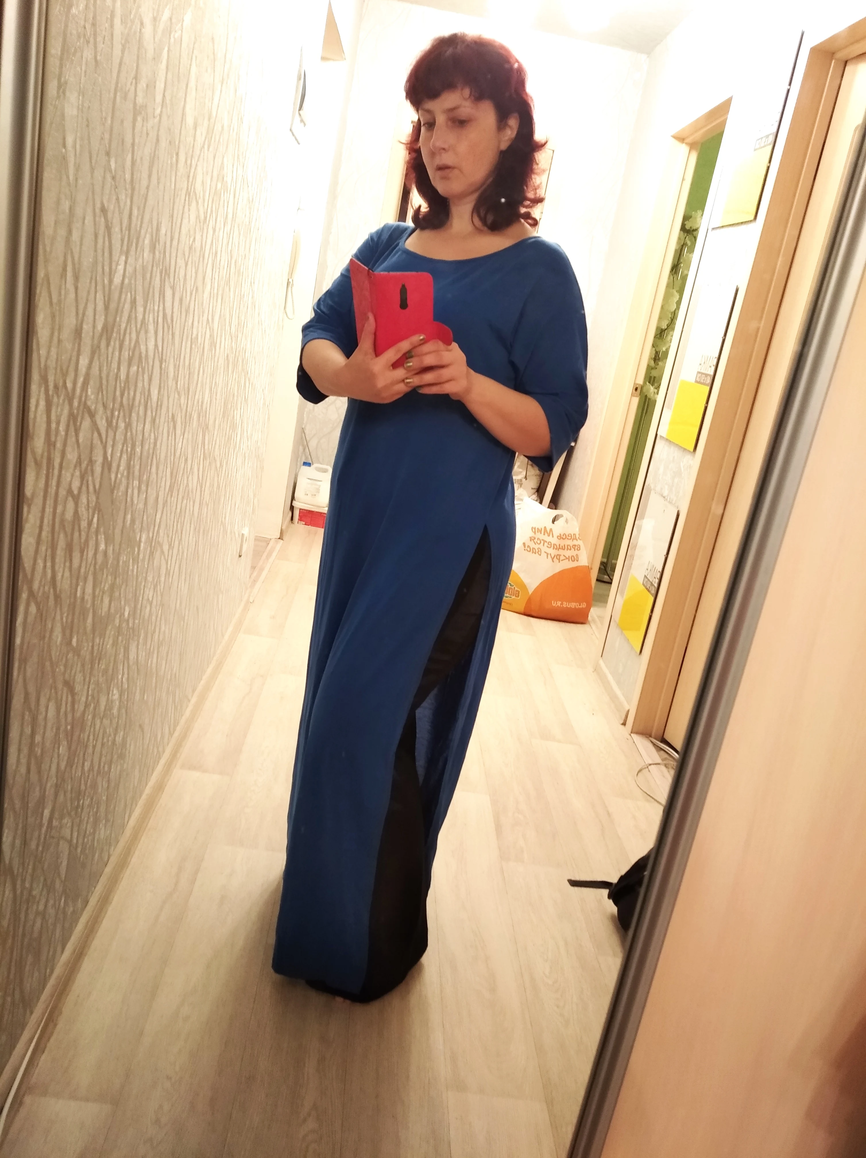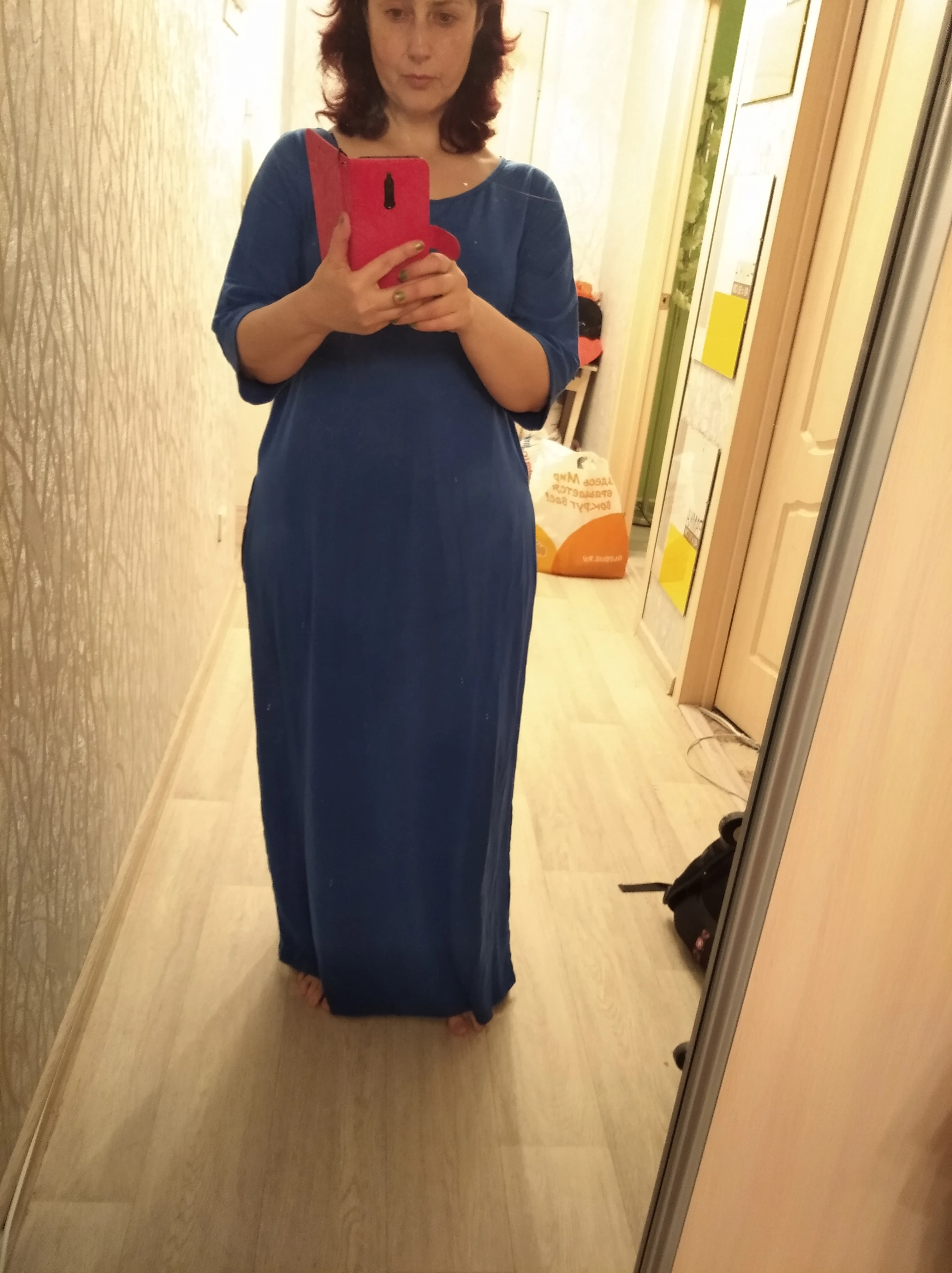 Быстрая доставка- в Санкт-Петербург за 18 дней. Платье хорошо сшито, ткань футболочная, хлопок с синтетикой. Для меня оверсайз, можно носить с поясом.