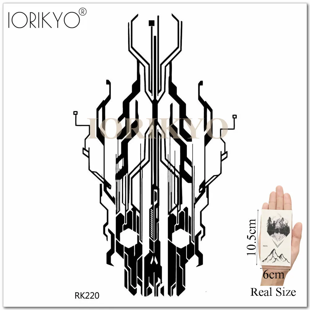 Женский скелет король временные татуировки наклейки черный геометрический призрак Мужчины рука череп-Тотем водостойкие татуировки боди-арт взрослые татуировки