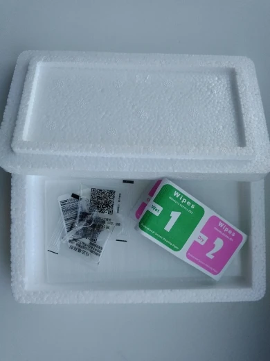 хорошее стекло. плотное. приклеилось хорошо. в комплекте был набор для дезинфекции. доставка меньше месяца
