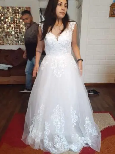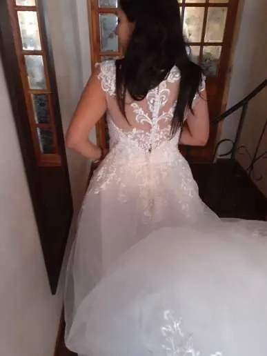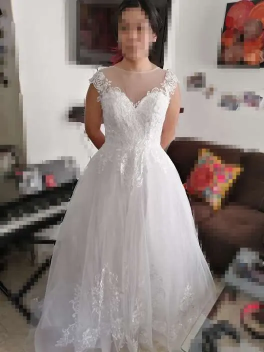 ТРАПЕЦИЕВИДНОЕ кружевное свадебное платье с аппликацией, модель 202...