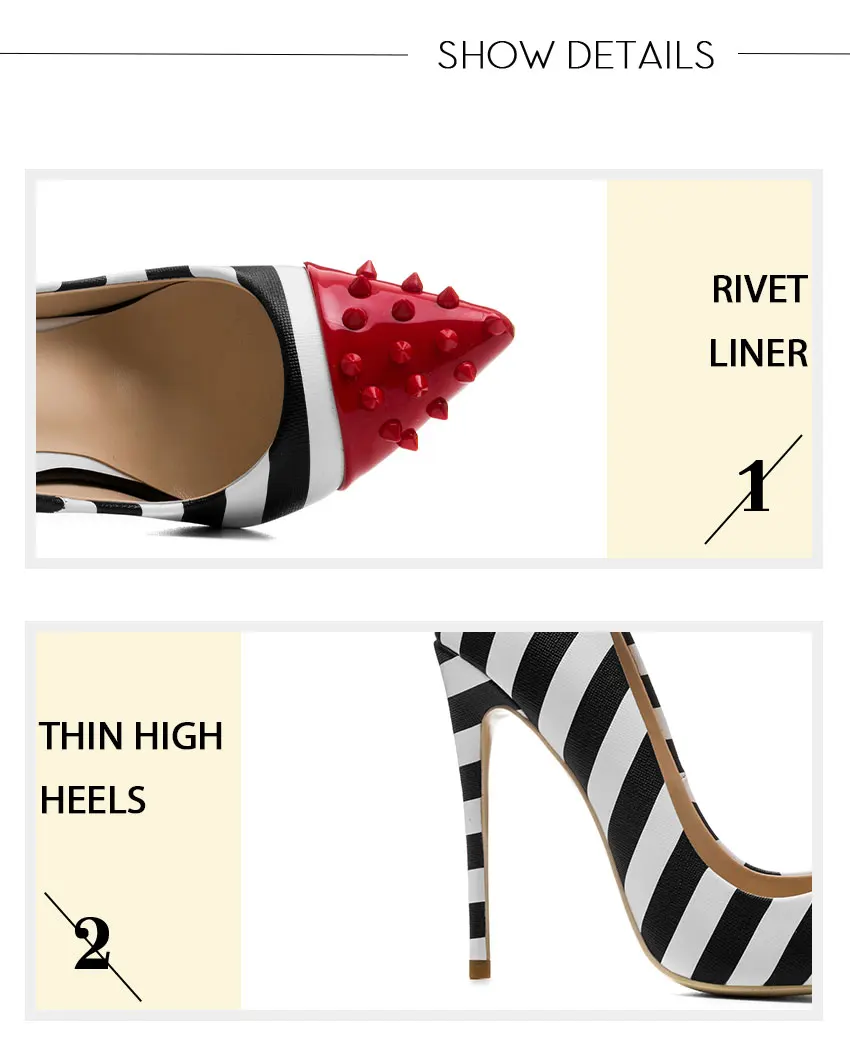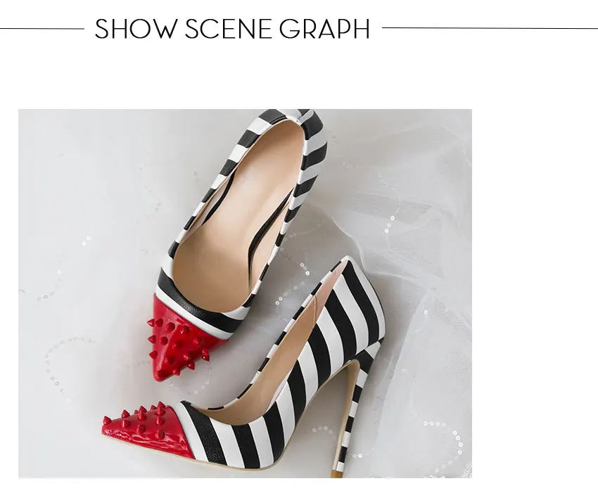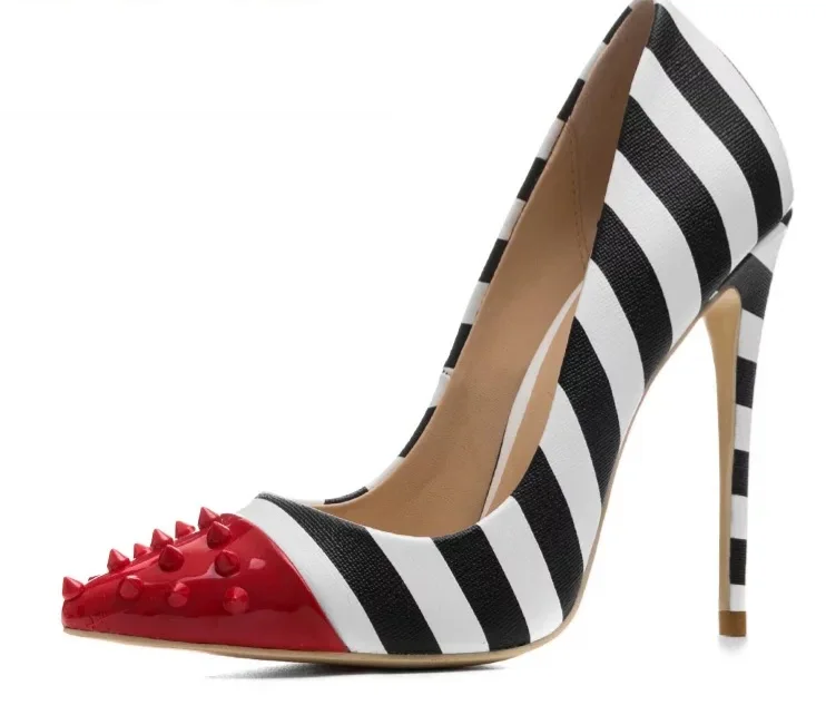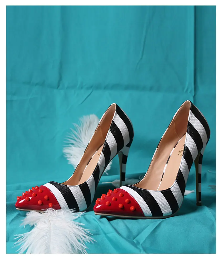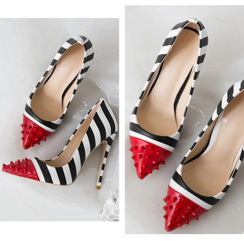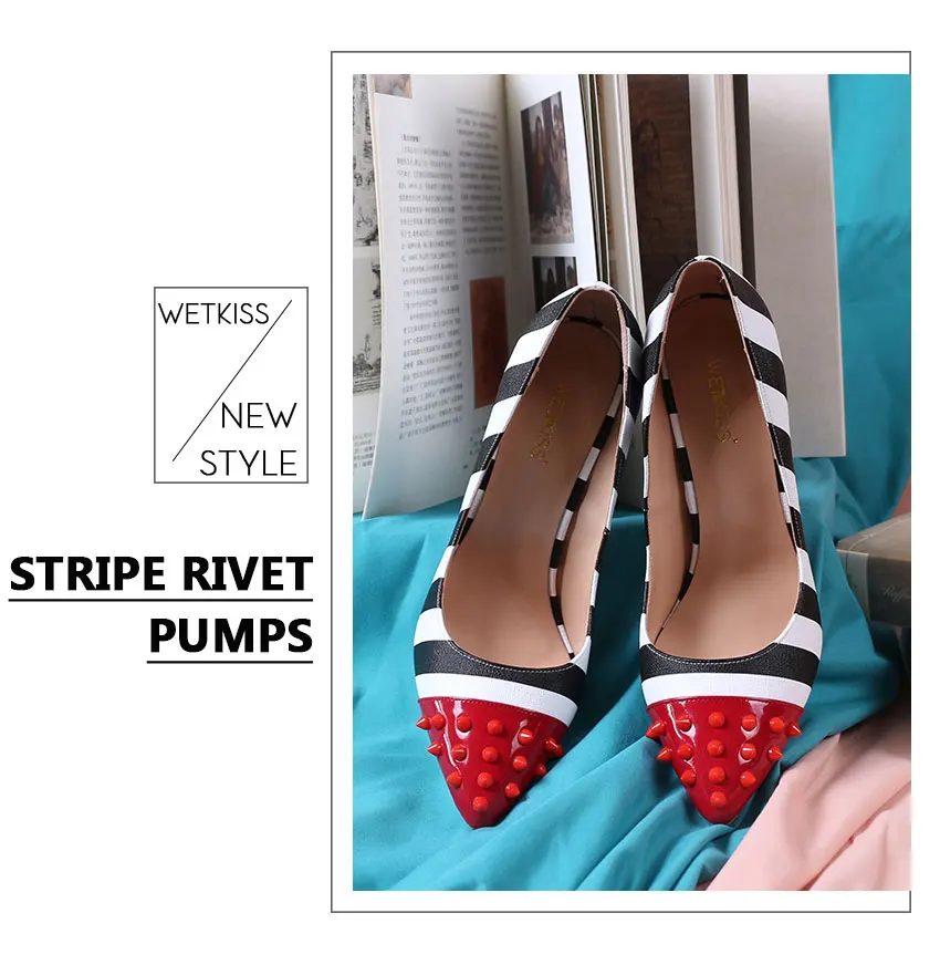 WETKISSженские вечерние туфли-лодочки на высоком каблуке 12 см, с заклепками и острым носком обувь с открытым носком в стиле зебры женские весенние туфли 2019 г. 34-45