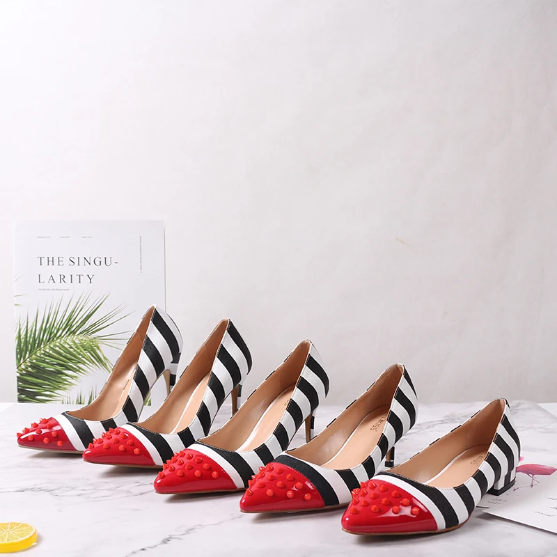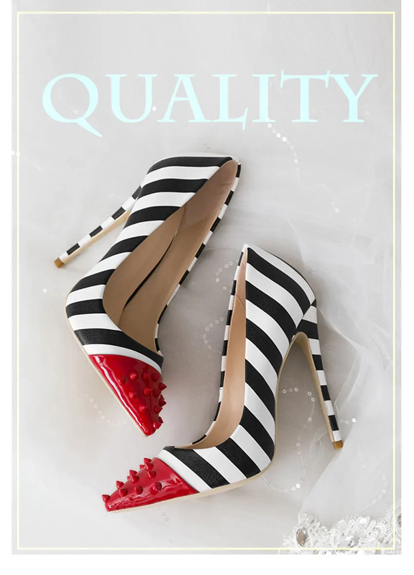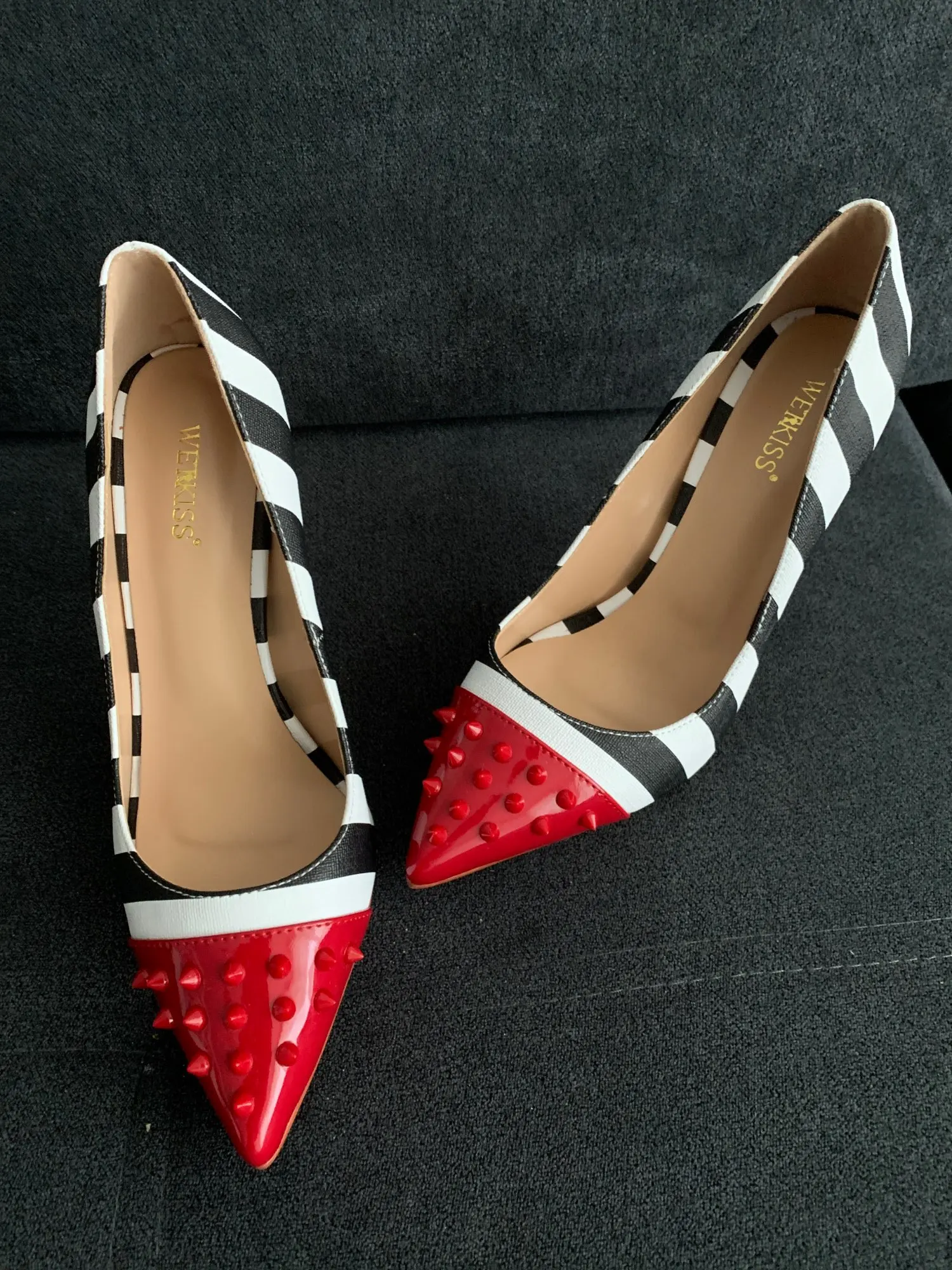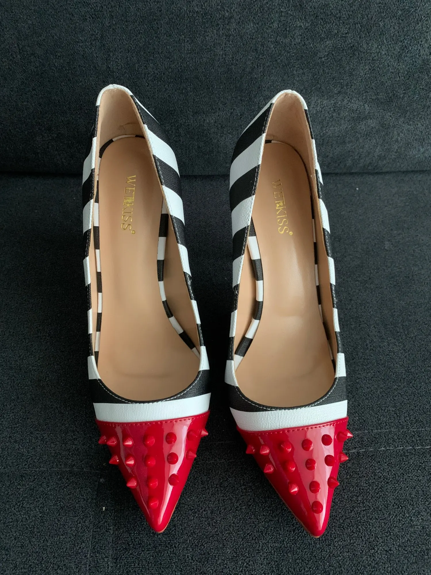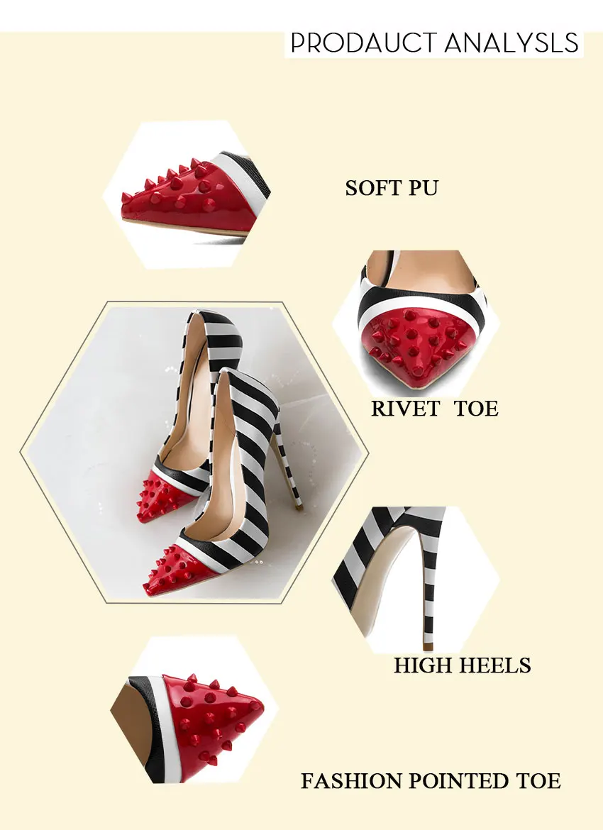 WETKISSженские вечерние туфли-лодочки на высоком каблуке 12 см, с заклепками и острым носком обувь с открытым носком в стиле зебры женские весенние туфли 2019 г. 34-45