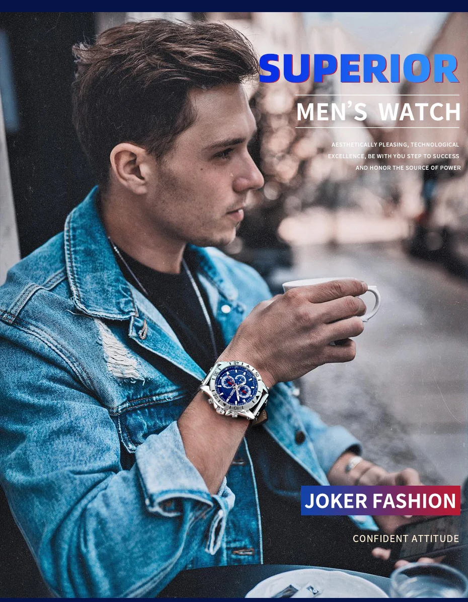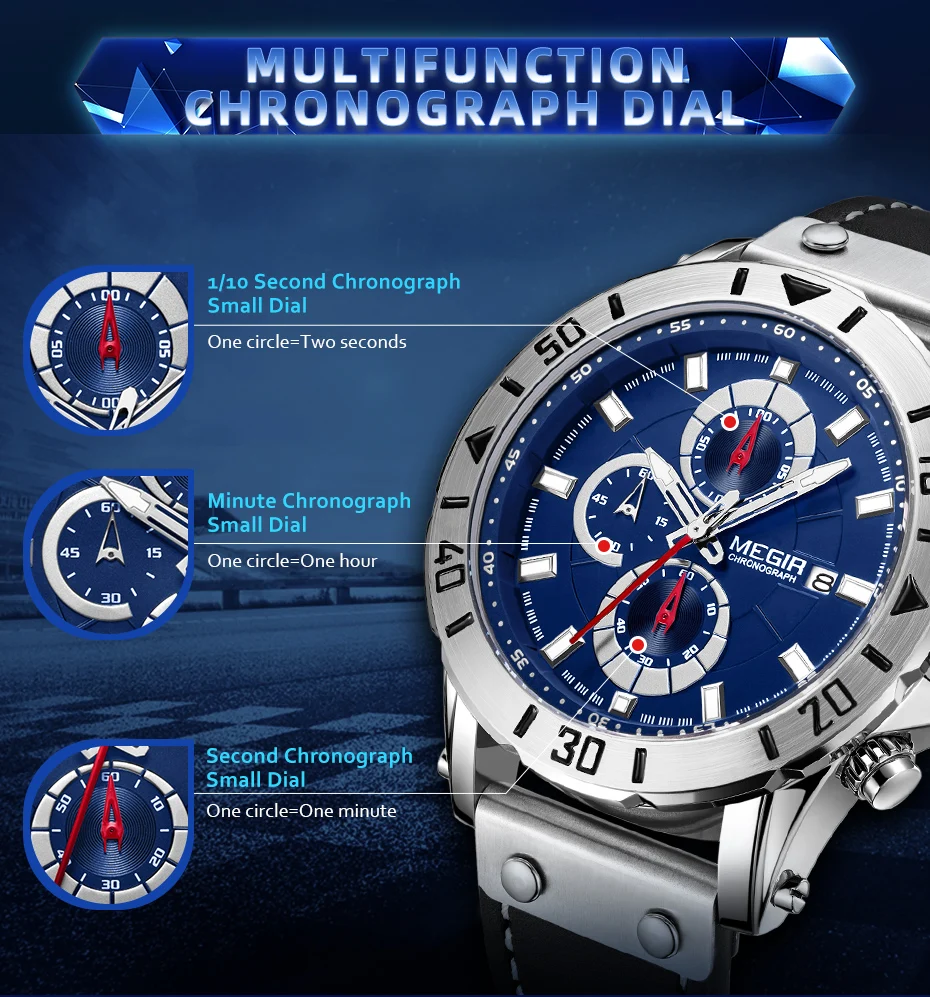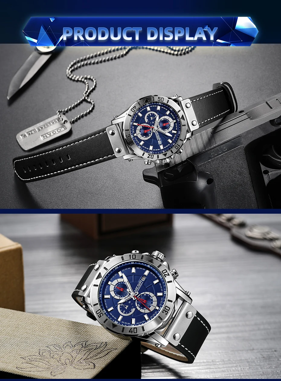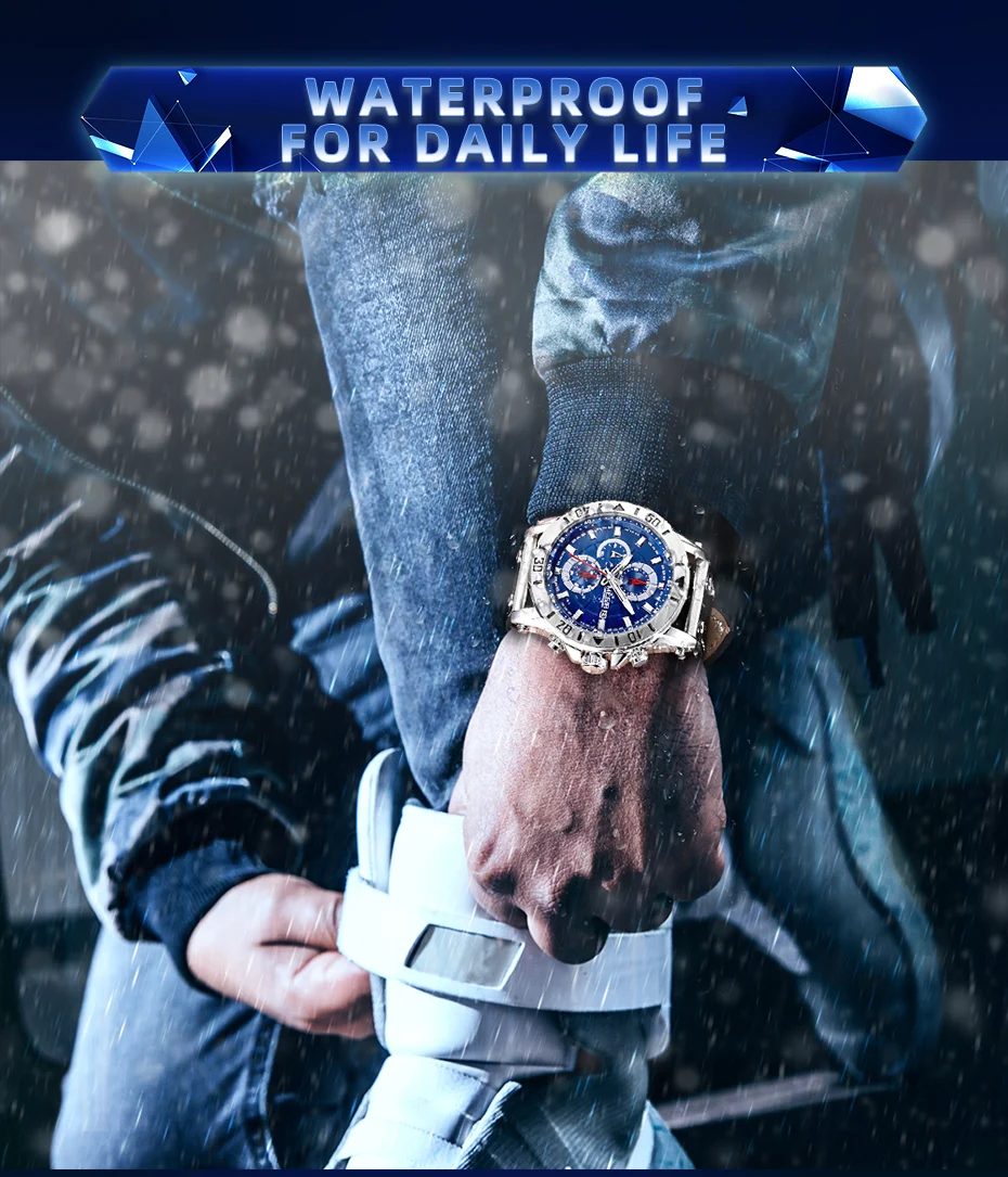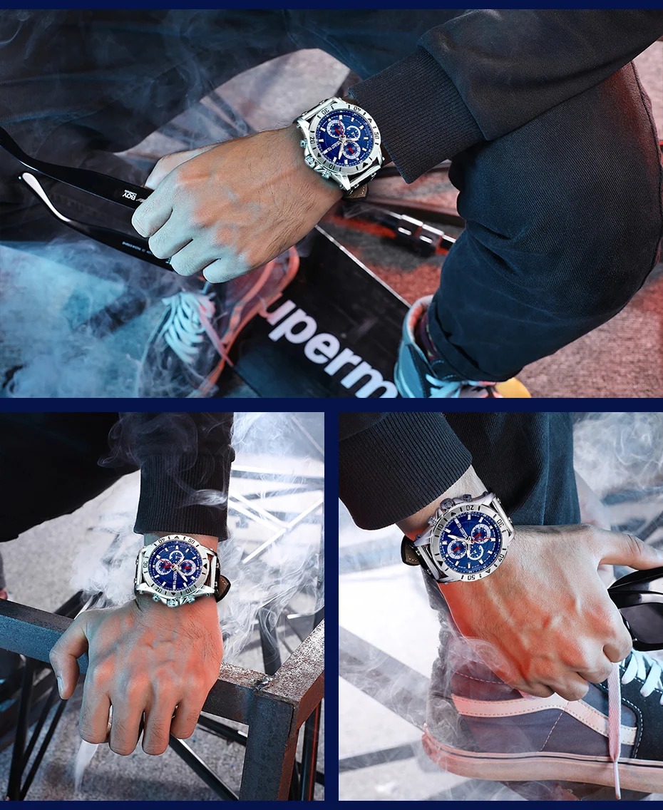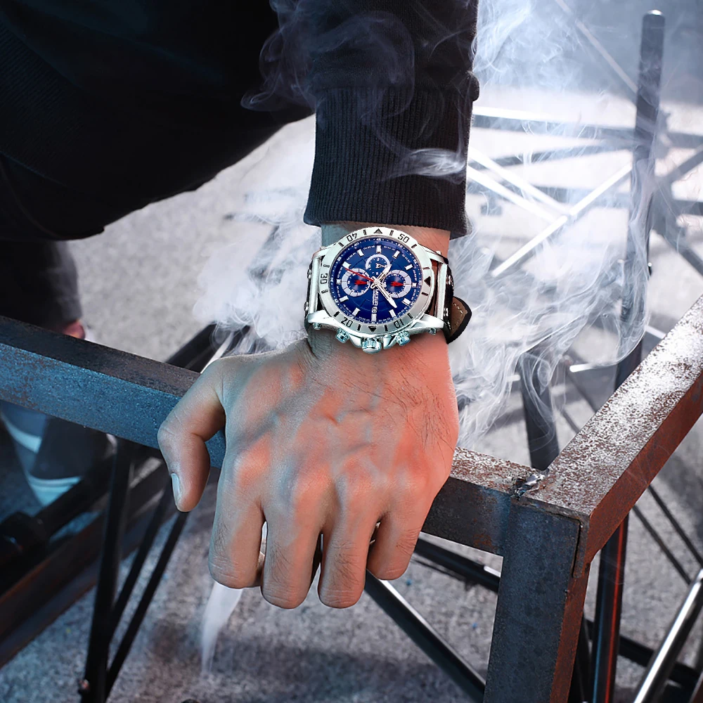 Часы-хронограф Мужские кварцевые, синие, спортивные