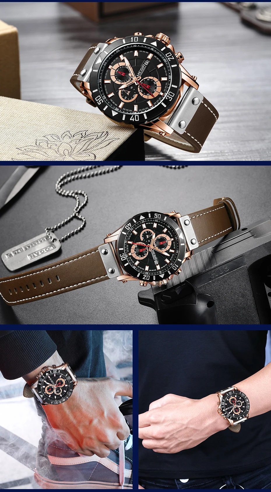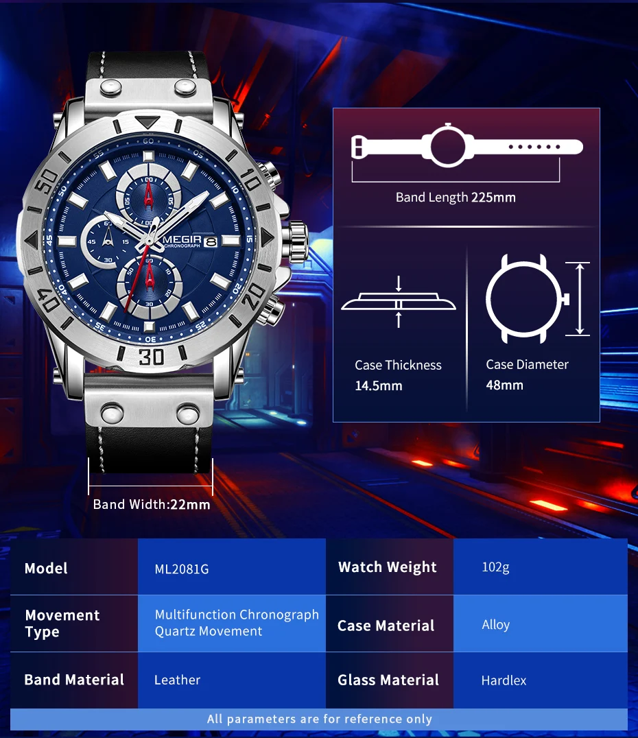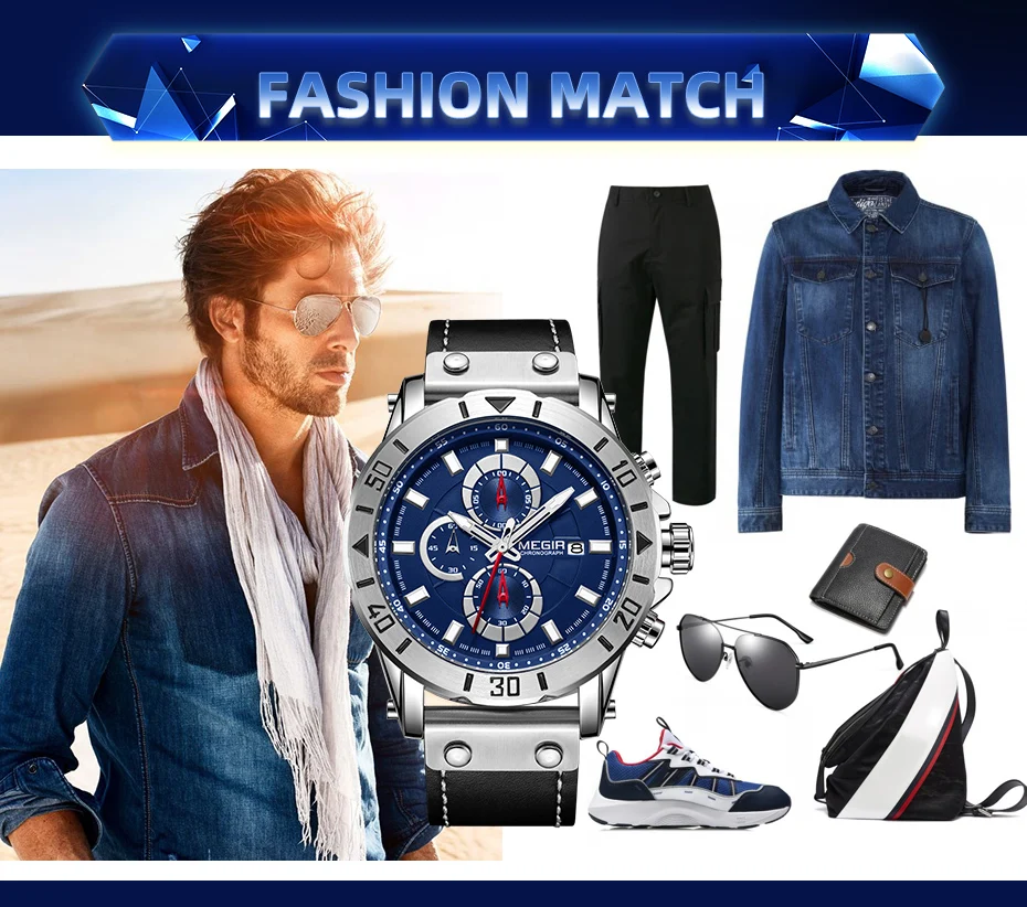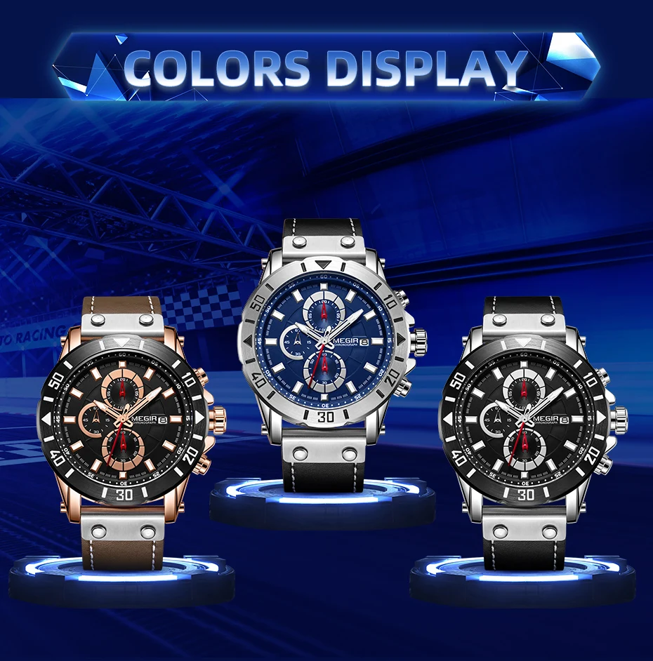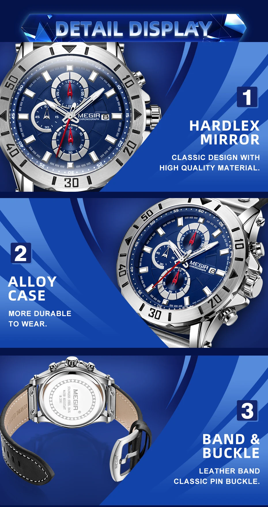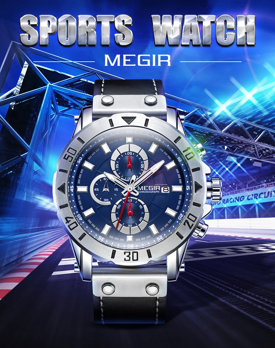 Часы-хронограф Мужские кварцевые, синие, спортивные