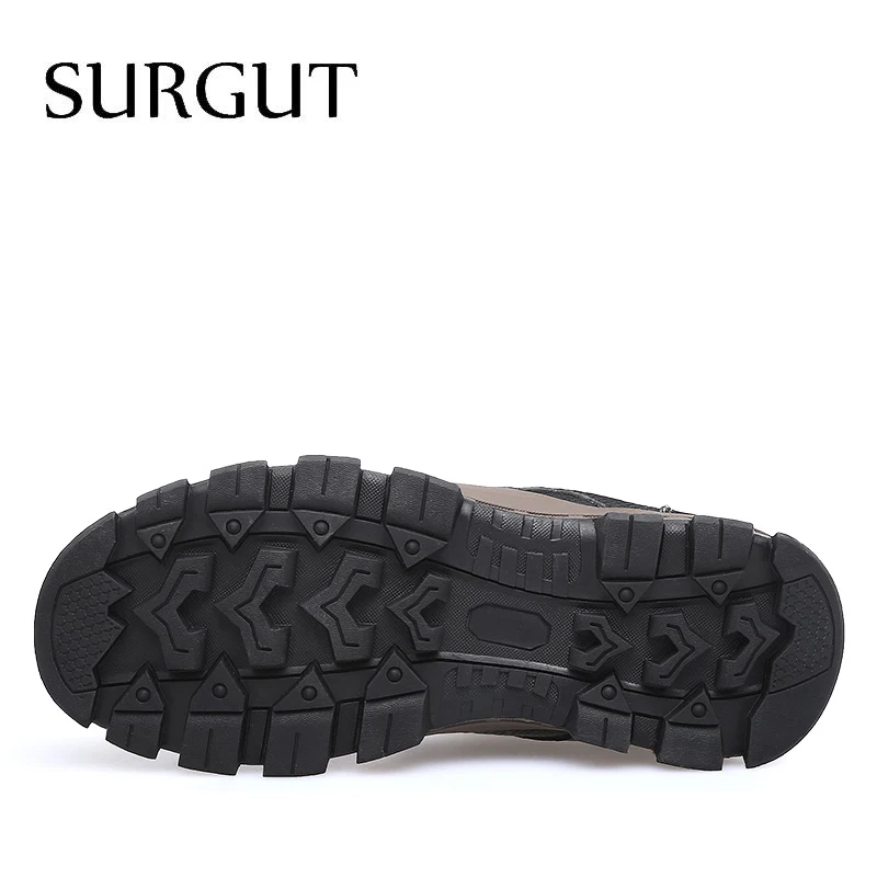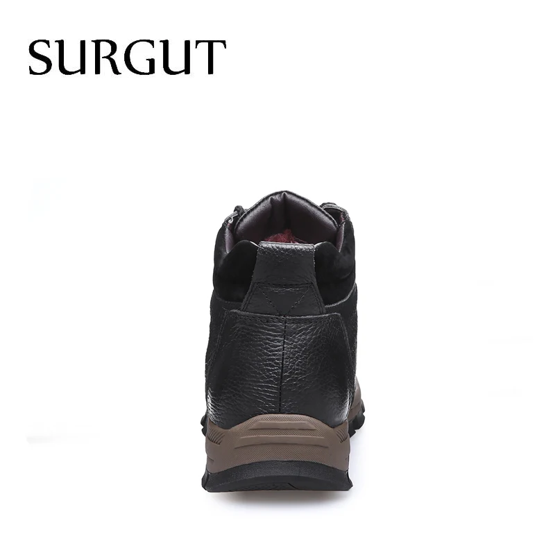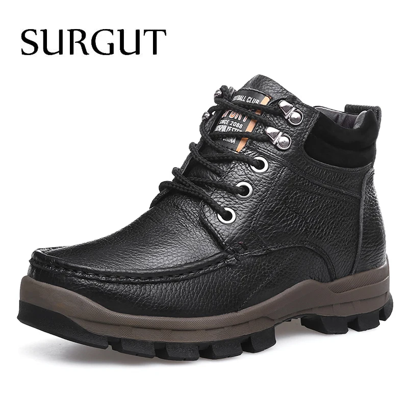 Мужские рабочие высокие ботинки с мехом SURGUT, черные ботильоны с теплым плюшем для отдыха, обувь из натуральной кожи большого размера 38~48 для зимы, 2019