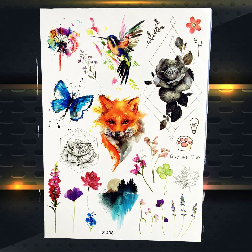REJASKI временные животные Лев волк цветы тату водонепроницаемые треугольные горные розы тату флэш-боди арт поддельные татуировки наклейки