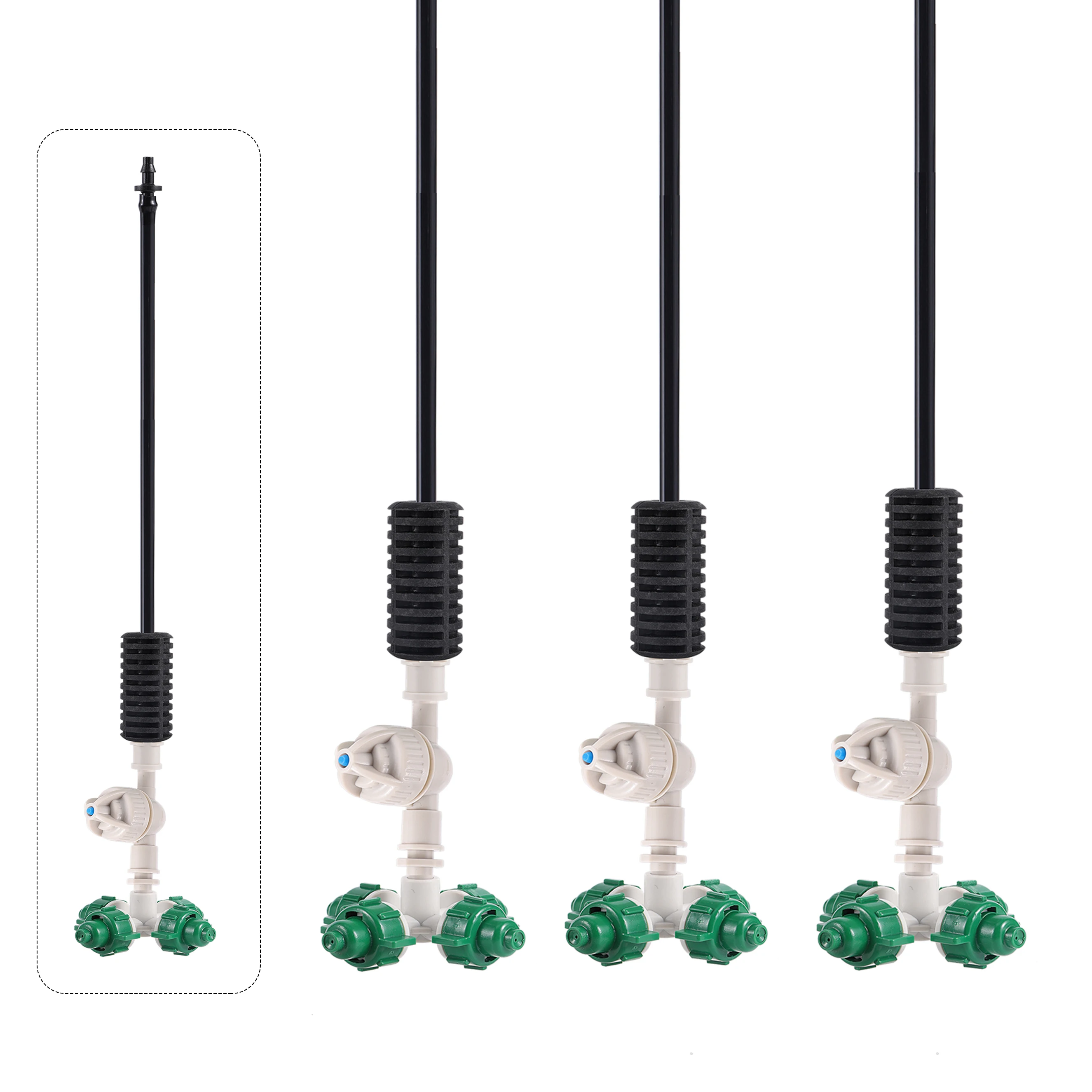 Крестообразные микроразбрызгиватели широко используются, распылительные сопла (также известные как вихревые распылительные сопла) и распылительные сопла с низким потоком вертикально устанавливаются в теплице и контролируют влажность.