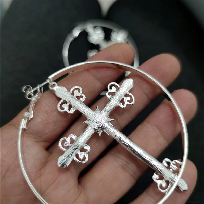 KUGUYS Большая подвеска в форме Креста, серьги для женщин, серьги с металлическими кристаллами золотого и серебряного цвета, ювелирные изделия, Круглые винтажные аксессуары
