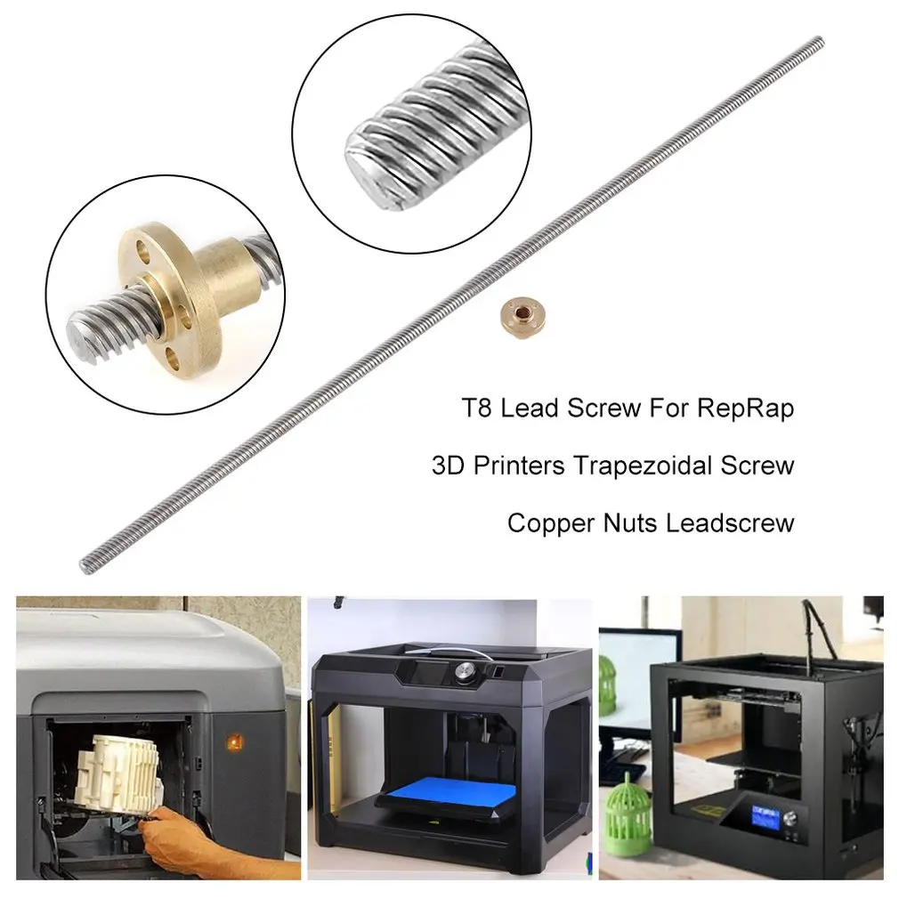 Свинцовый винт T8, детали для 3D-принтера 250 300 350 400 500 мм, свинцовые винты 8 мм, трапециевидные стержни, гайки, винты Coppe Для запчастей Reprair