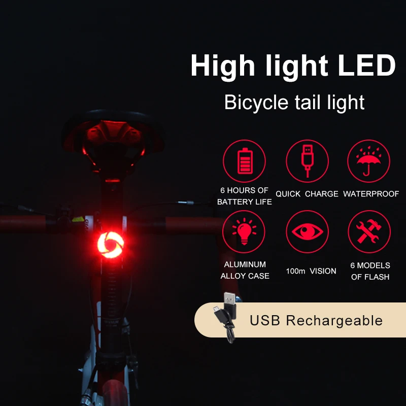 Светодиодный задний велосипедный светильник, перезаряжаемый от USB