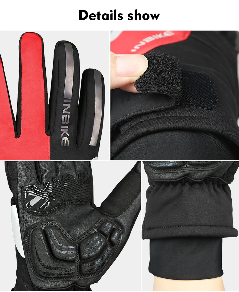 INBIKE зимние теплые велосипедные перчатки с сенсорным экраном велосипедные перчатки для MTB с толстым гелевым подкладом мужские светоотражающие велосипедные перчатки для катания на лыжах