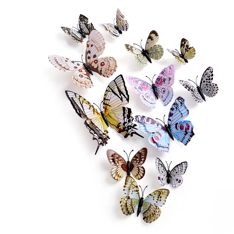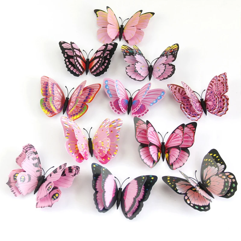 12 шт.компл. разноцветные двухслойные Крылья 3D бабочки наклейки на стену комнаты настенный Декор ПВХ бабочки магнитные наклейки на холодильник
