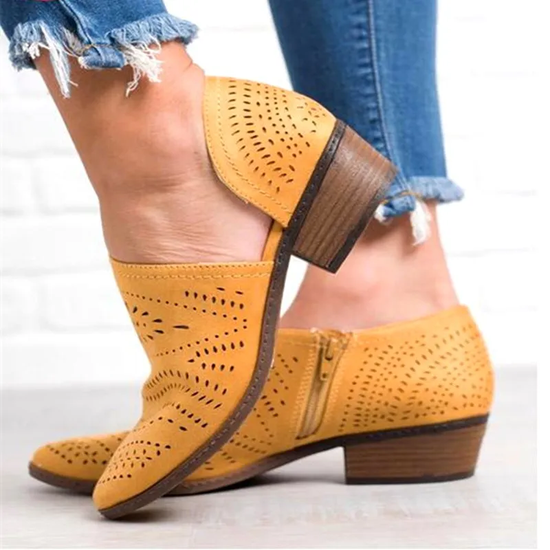 Босоножки EOEODOIT женские на среднем массивном каблуке, босоножки с острым носком, босоножки на молнии сбоку, короткая обувь с вырезами в стиле ретро, лето-осень