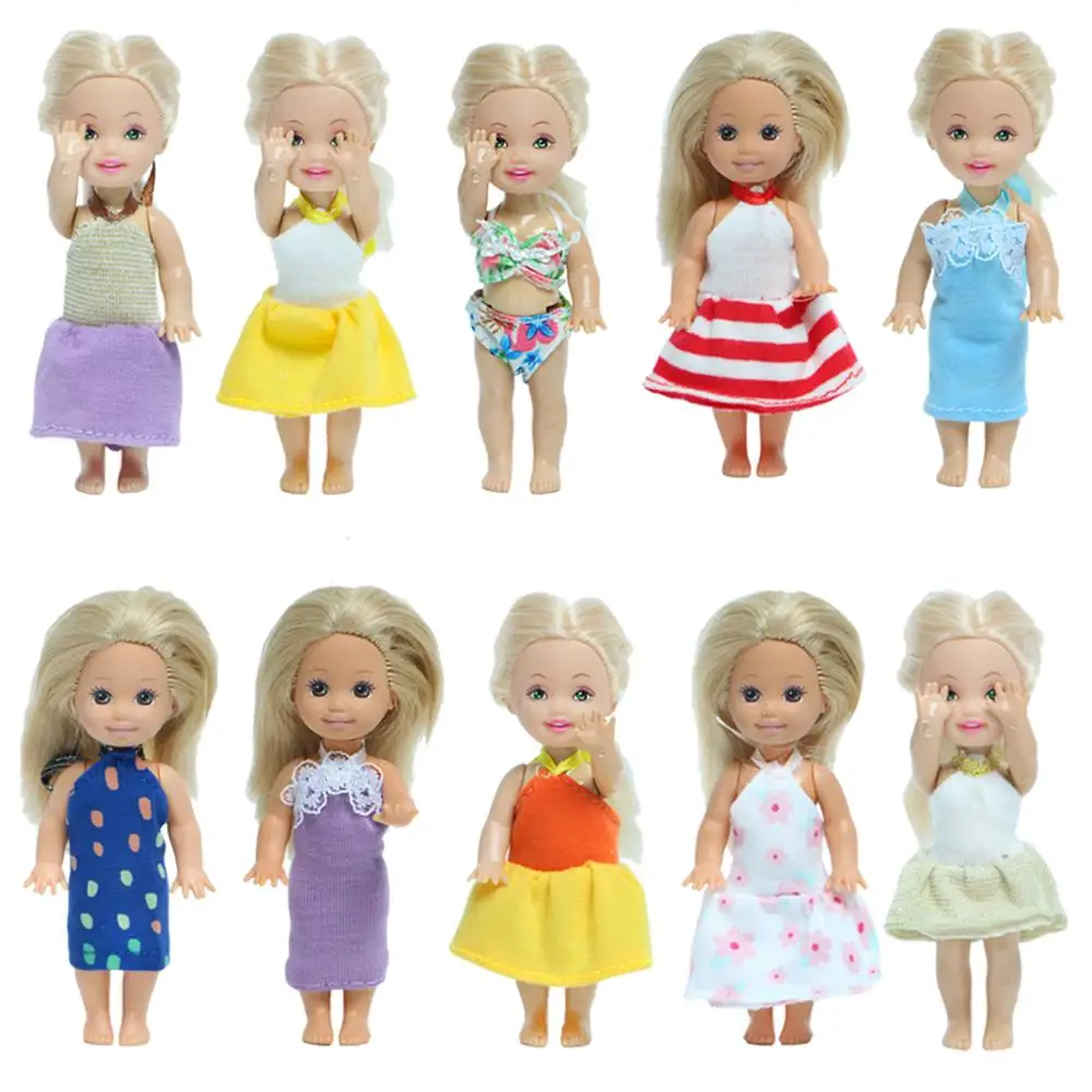 Мини-одежда, 5 шт. в ассортименте, милая повседневная одежда, юбка, жилет, шорты, аксессуары, одежда для сестры Барби, для куклы Келли, 4 дюйма