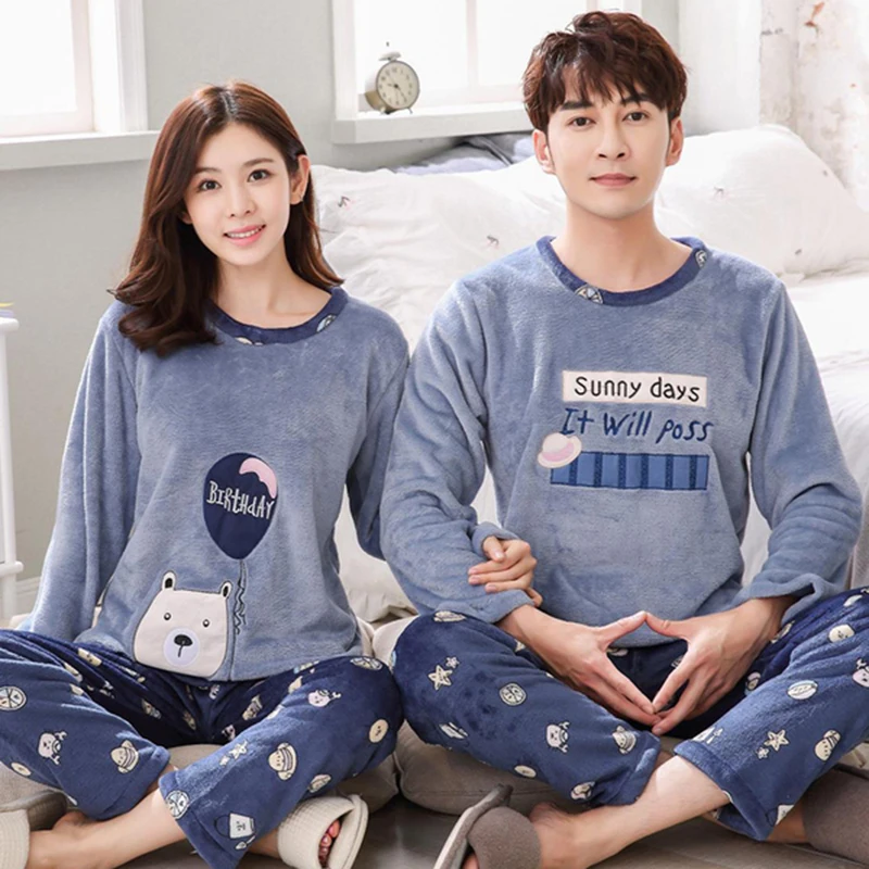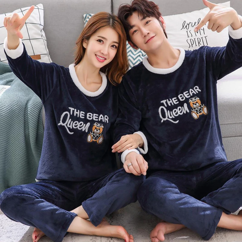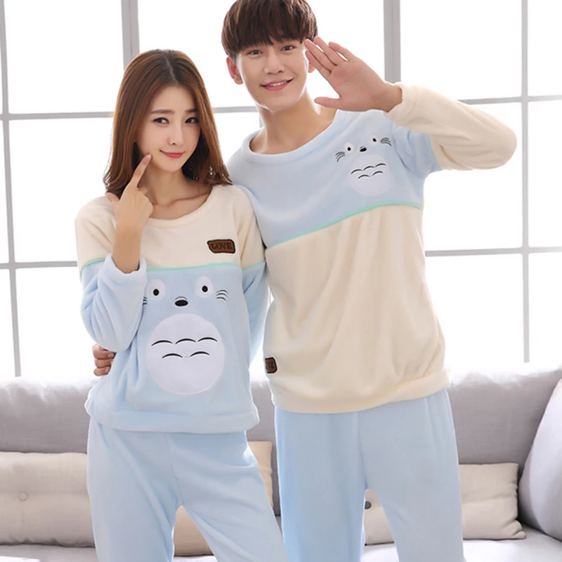 Парные зимние толстые теплые фланелевые пижамные комплекты для женщин с длинным рукавом Коралловая бархатная Пижама для мужчин Милая мультяшная Пижама домашняя одежда