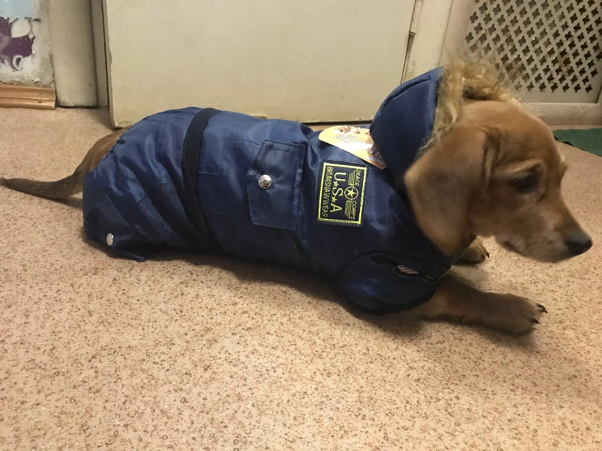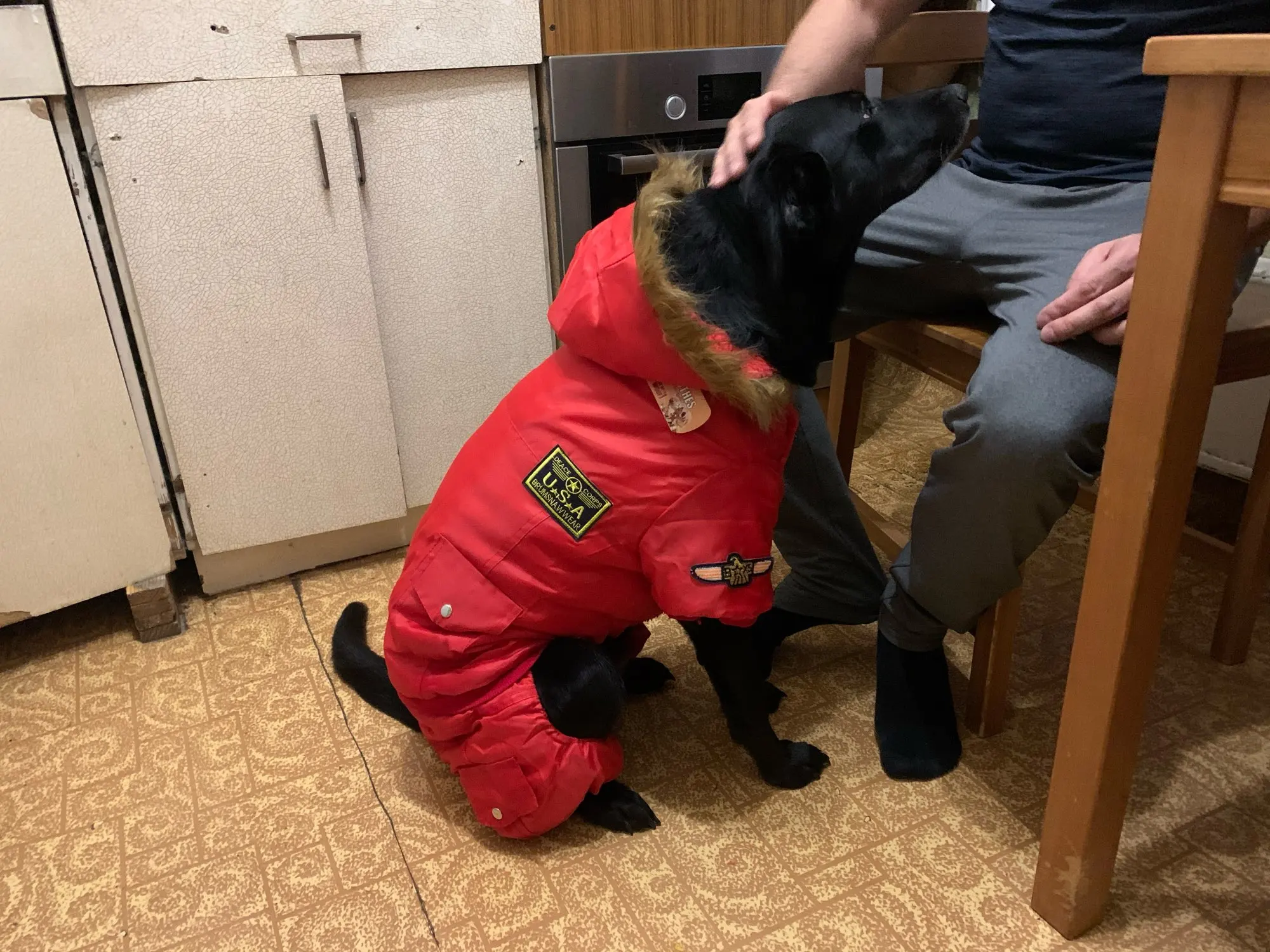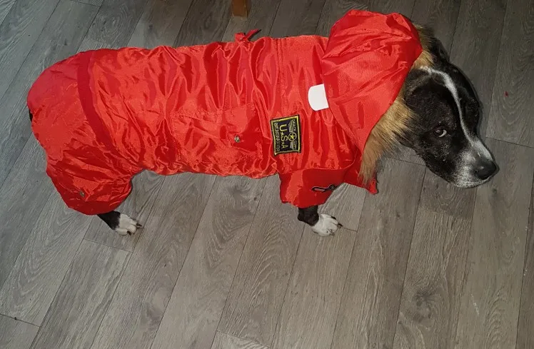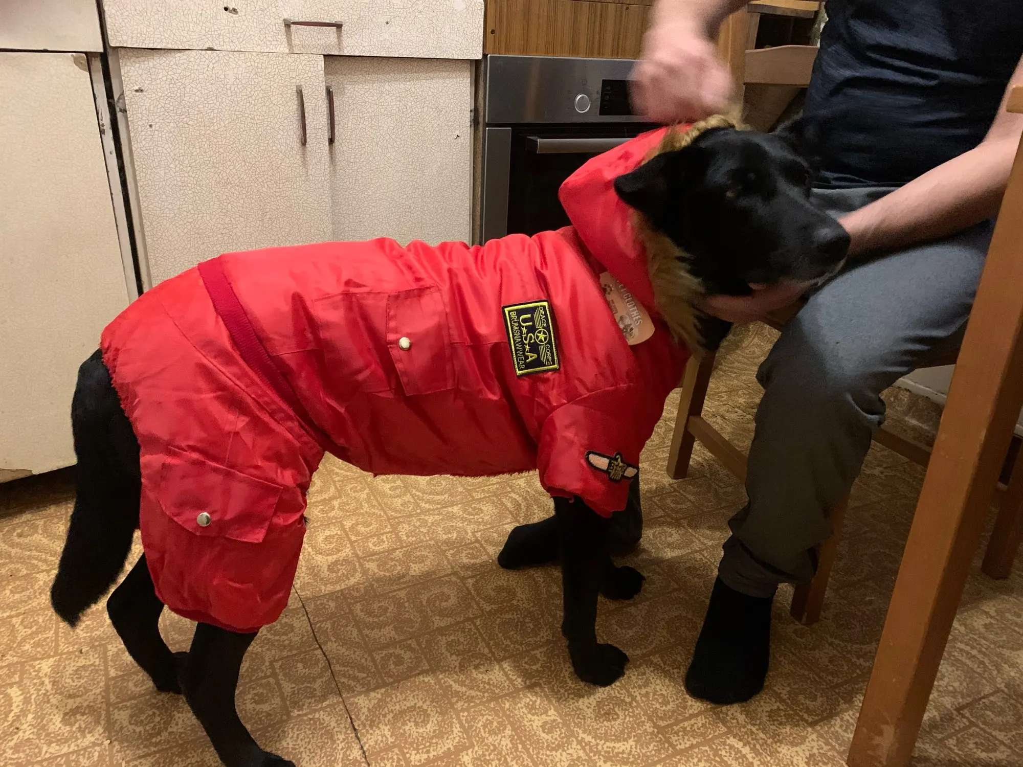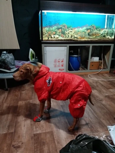 Собаке понравилось. Все очень хорошо,пальто сшито качественно и точно по размеру, подшивать не пришлось.
