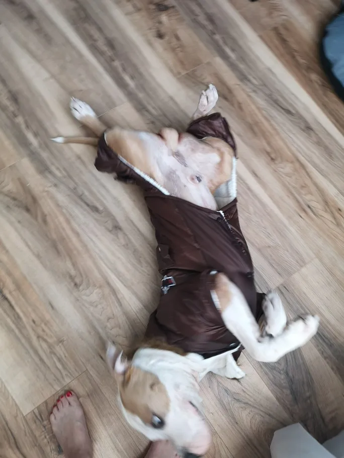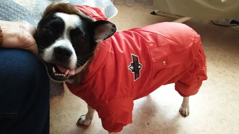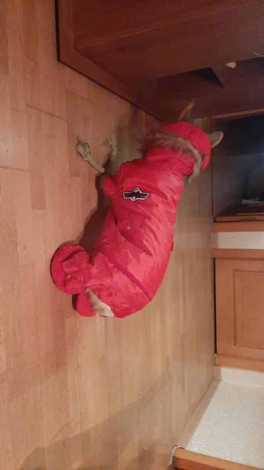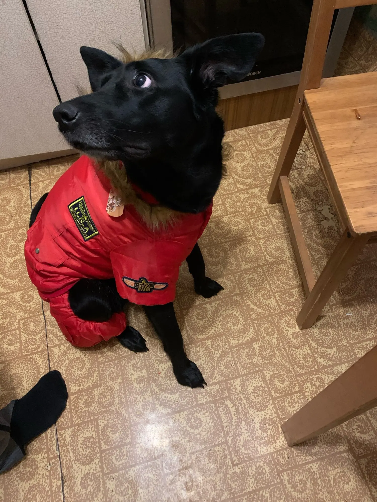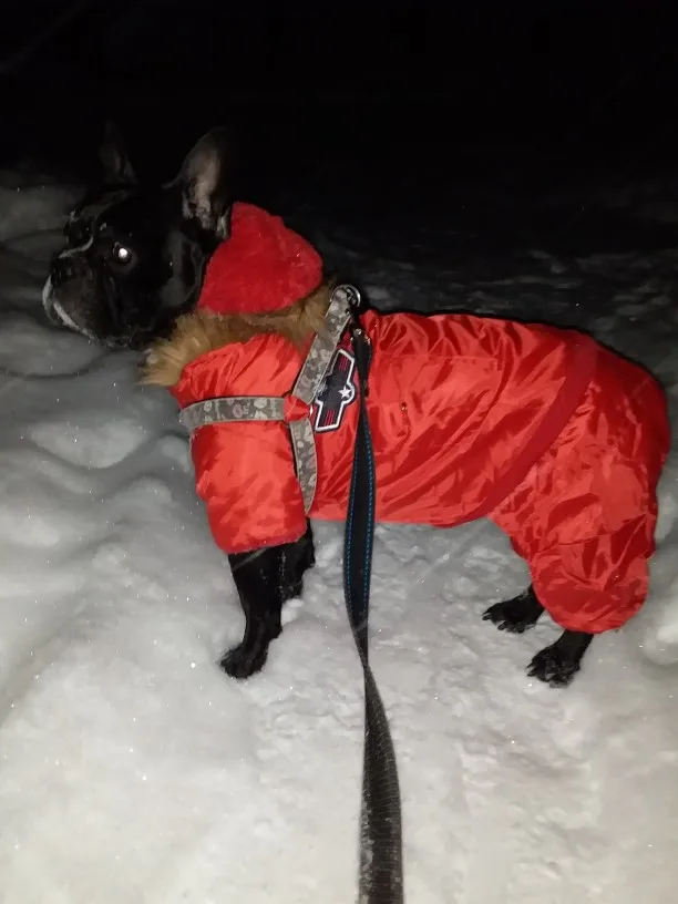 Собаке понравилось. Все очень хорошо,пальто сшито качественно и точно по размеру, подшивать не пришлось.