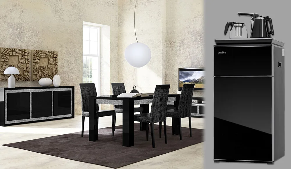 Кулер (диспенсер) для воды HIBERG F-91FGB с нижней загрузкой бутыли и сервировочной поверхностью, с электронным охлаждением и стеклянным заварочным чайником в подарок