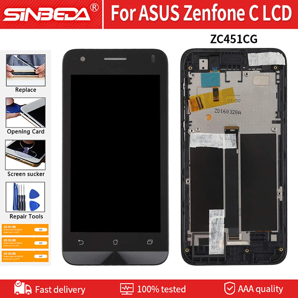 4,5 "оригинал для ASUS Zenfone C ZC451CG ЖК-дисплей сенсорный экран с рамкой дигитайзер сборка для ASUS ZC451CG Z007 дисплей