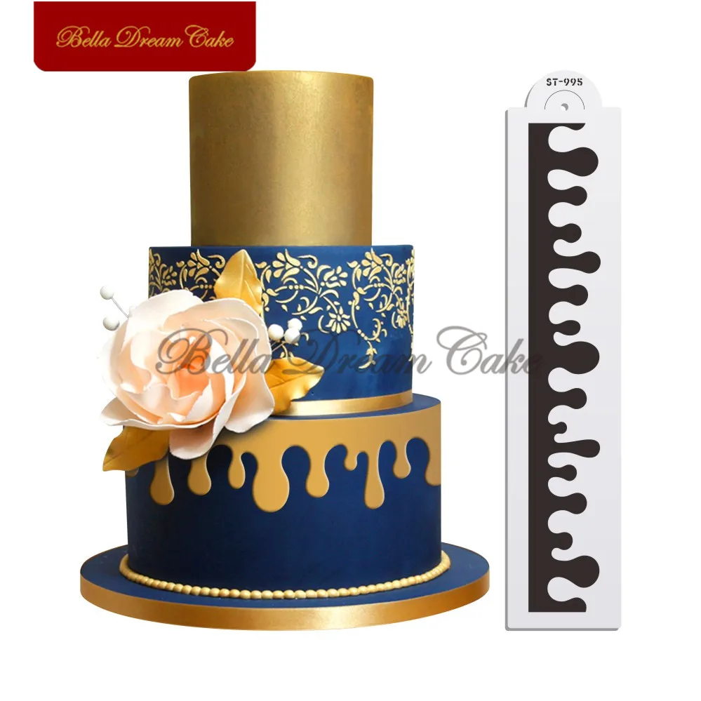 Трафарет для торта с изображением пламеней и капель воды, трафареты для торта, пластиковые шаблоны, DIY формы для рисования, инструмент для украшения торта, посуда для выпечки