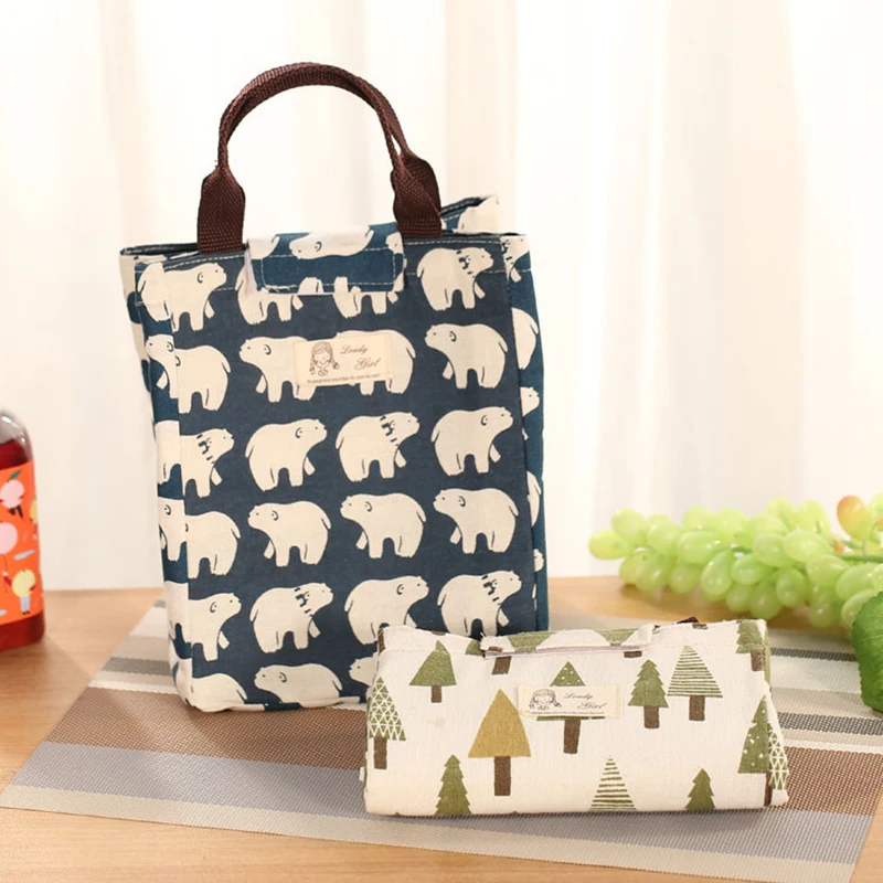 Сумка для ланча из хлопка и льна, портативная Термосумка для еды, м...