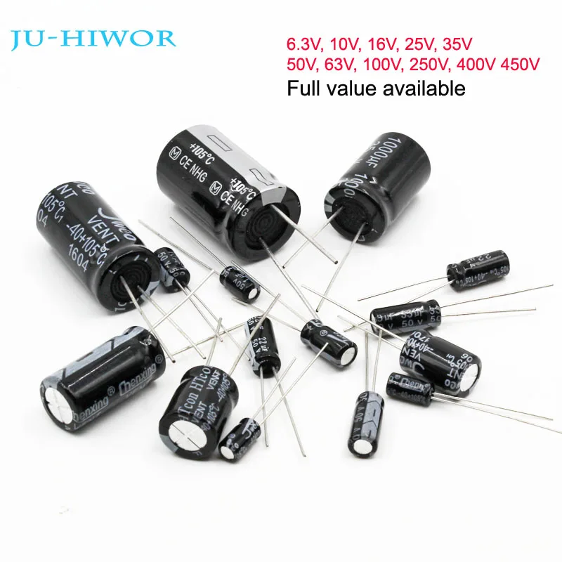 Полноценный алюминиевый электролитический конденсатор 6,3 В 10 в 16 в 25 в 35 в 50 в 63 в 100 в 250 в 400 в 450 в 10 мкФ Ф до 1000 мкФ 1000 мкФ до 4700 мкФ