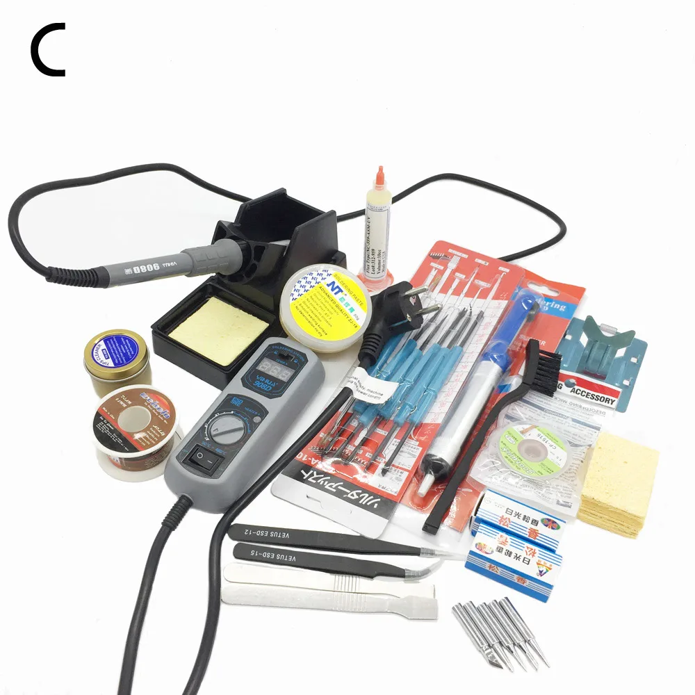 Оригинальный паяльник YIHUA 908D 220 В110 В, с регулируемой температурой, электрический сварочный паяльник + 5 наконечников + подставка + Пинцет + губка