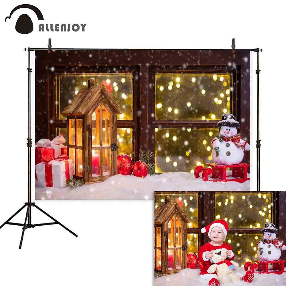 Allenjoy Рождественский фон для фотосъемки подарки-Снеговики деревянные окна боке зимние сани для детей фоны Фотофон