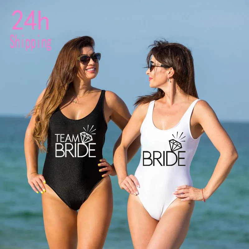 Слитный купальник с буквенным принтом бриллиантов для команды невесты, женский купальник, сексуальный свадебный костюм для мальчишника, купальный костюм, купальники