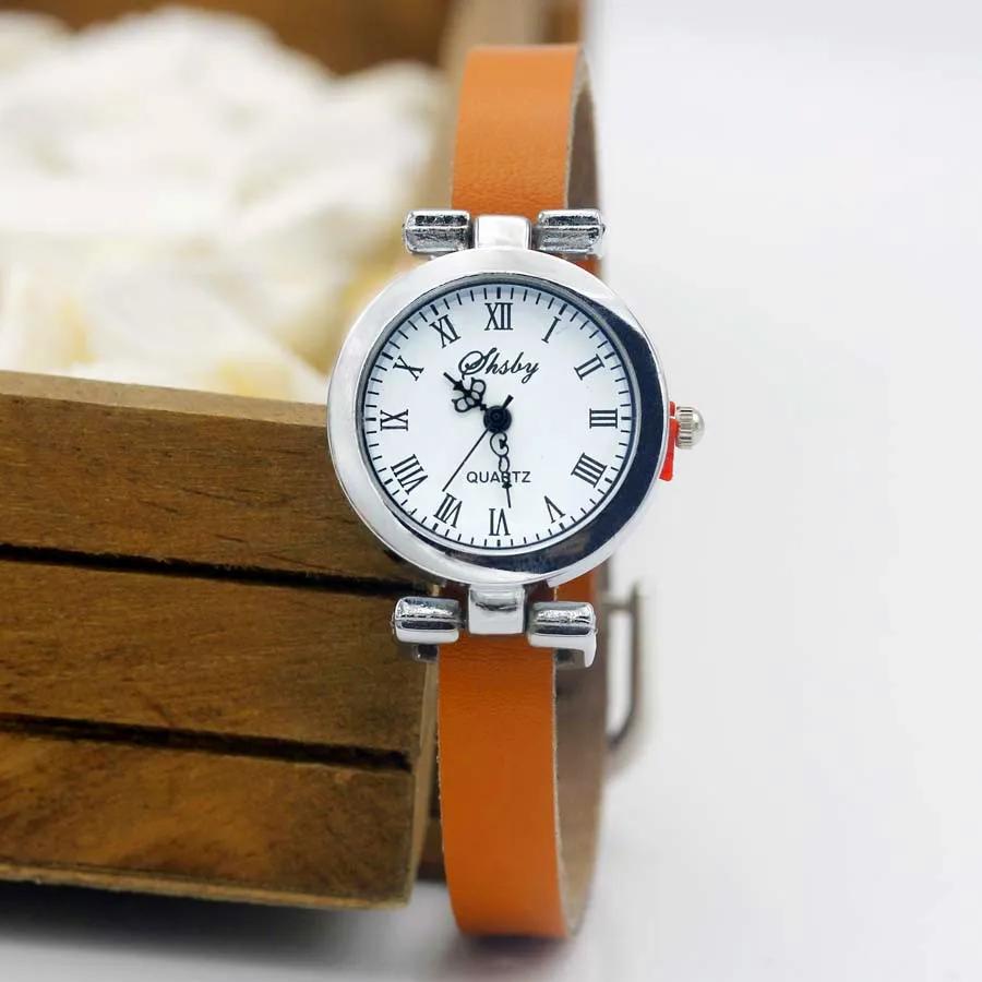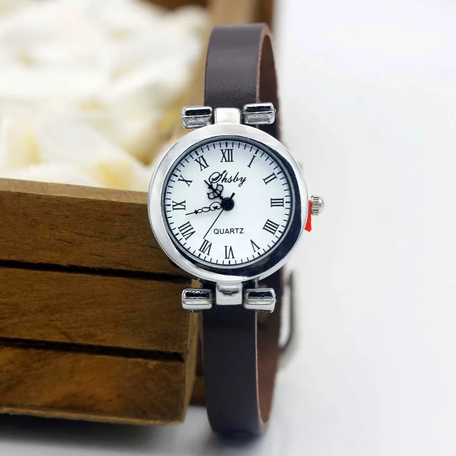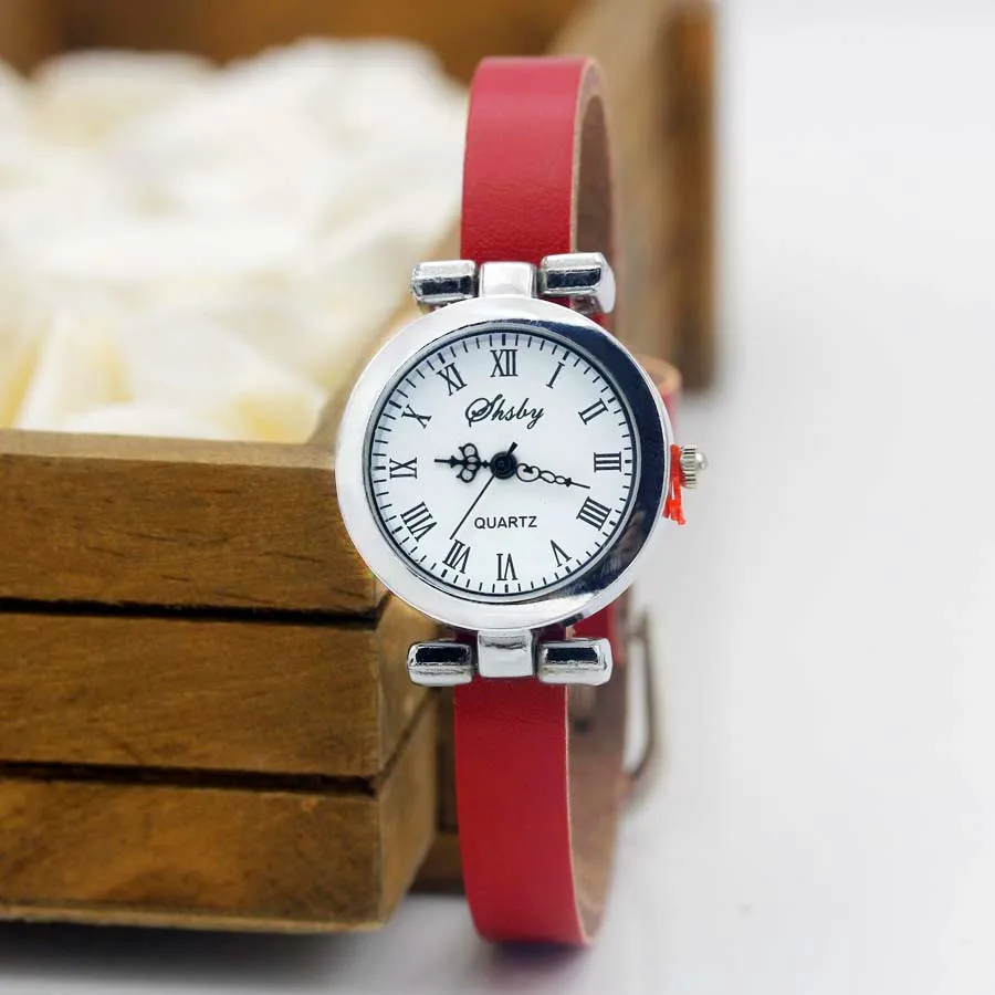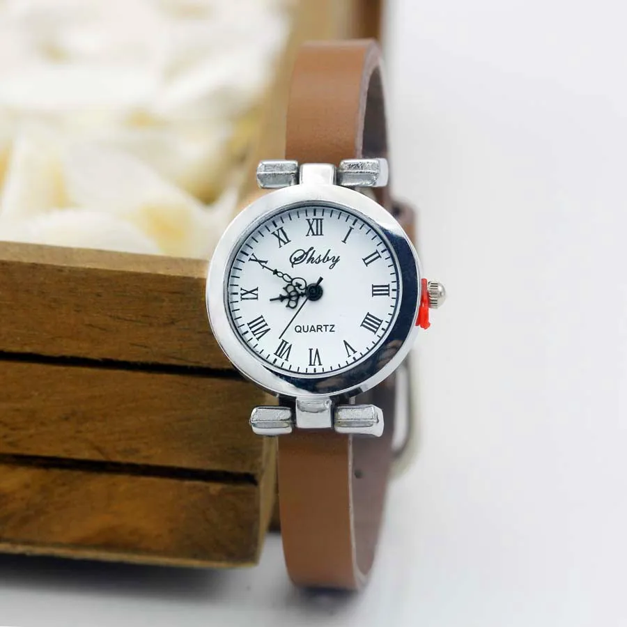 Часы Shsby женские с кожаным ремешком, простые студенческие часы с серебристым браслетом