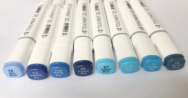 TOUCHNEW набор художественных маркеров, 8 шт., синие цвета, маркер для манги на спиртовой основе с двойной головкой, дизайн для рисования, эскизная ручка товары для рукоделия