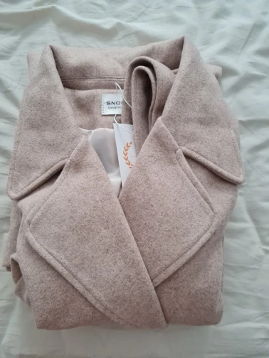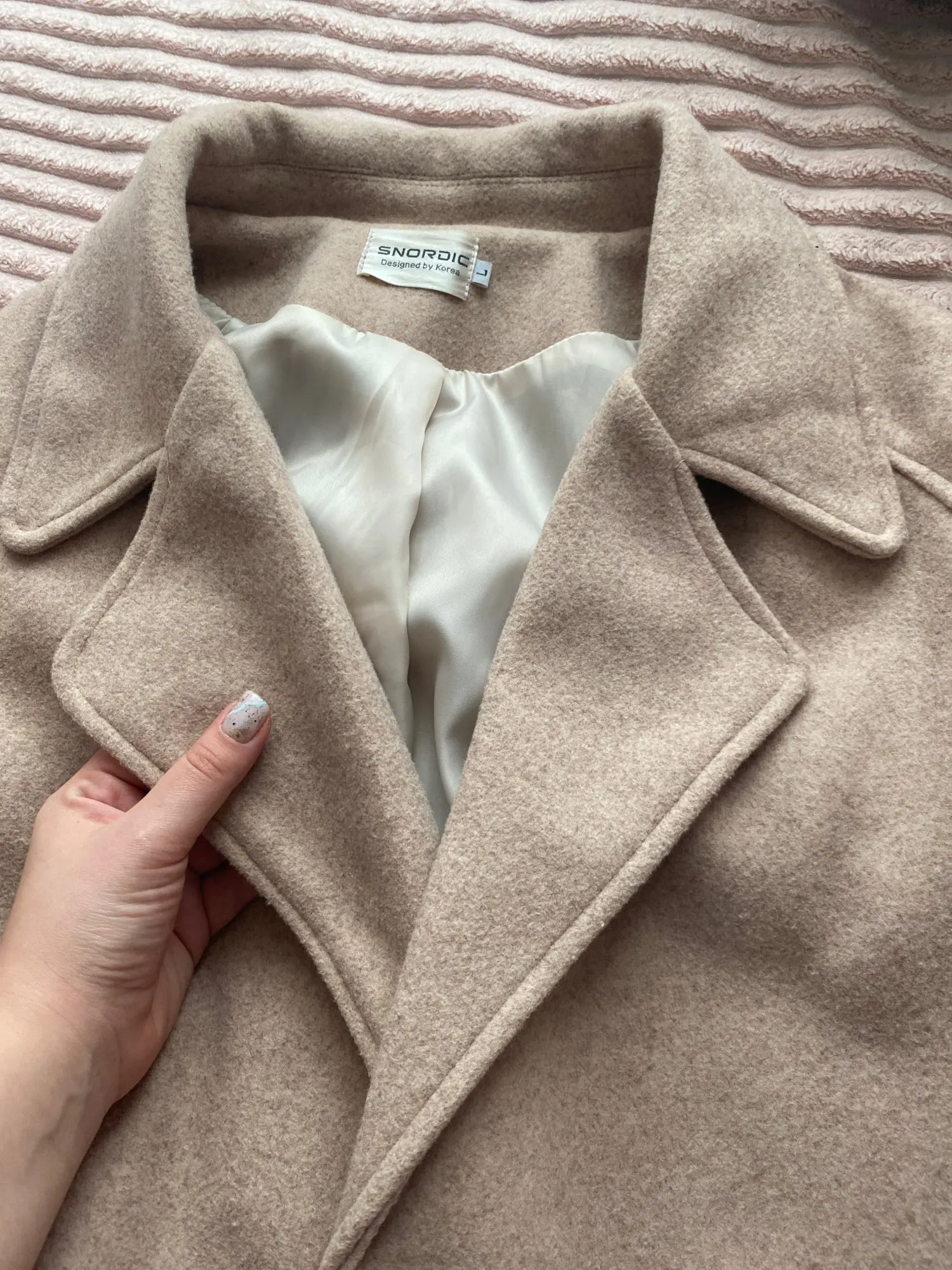 Очень крутое пальто за свою цену. Продавец утверждает 30% шерсти в составе, но никаких бирок на пальто нет. Выглядит дорого) по мне так тянет верхний шов на рукаве, но строчка ровная , надеюсь отпарю. Пришло в нск меньше чем за 14 недели с учётом праздников. К покупке рекомендую.