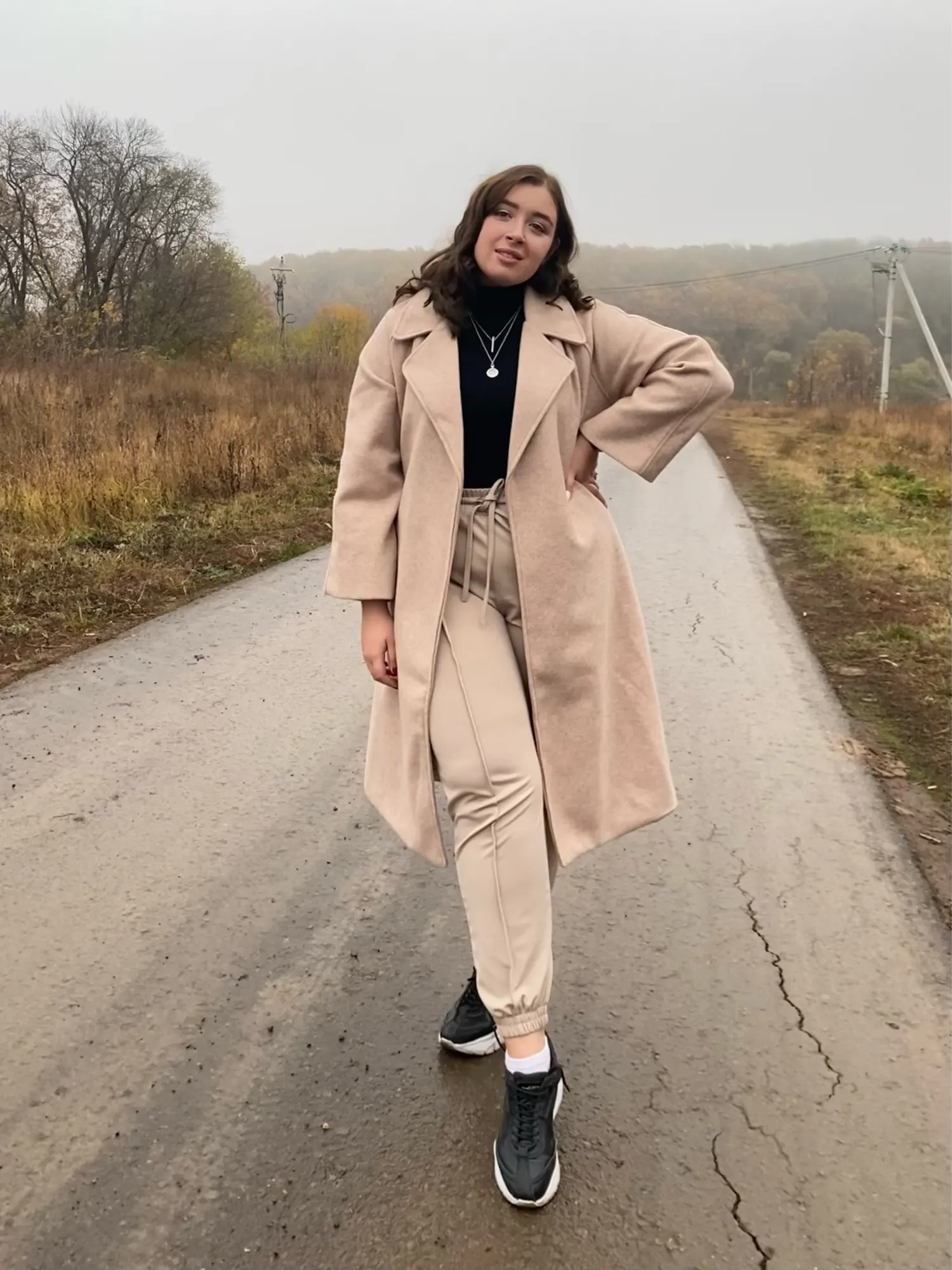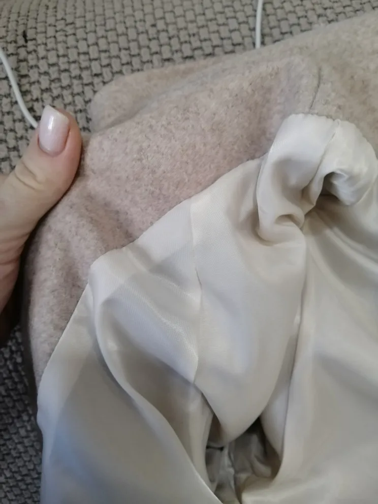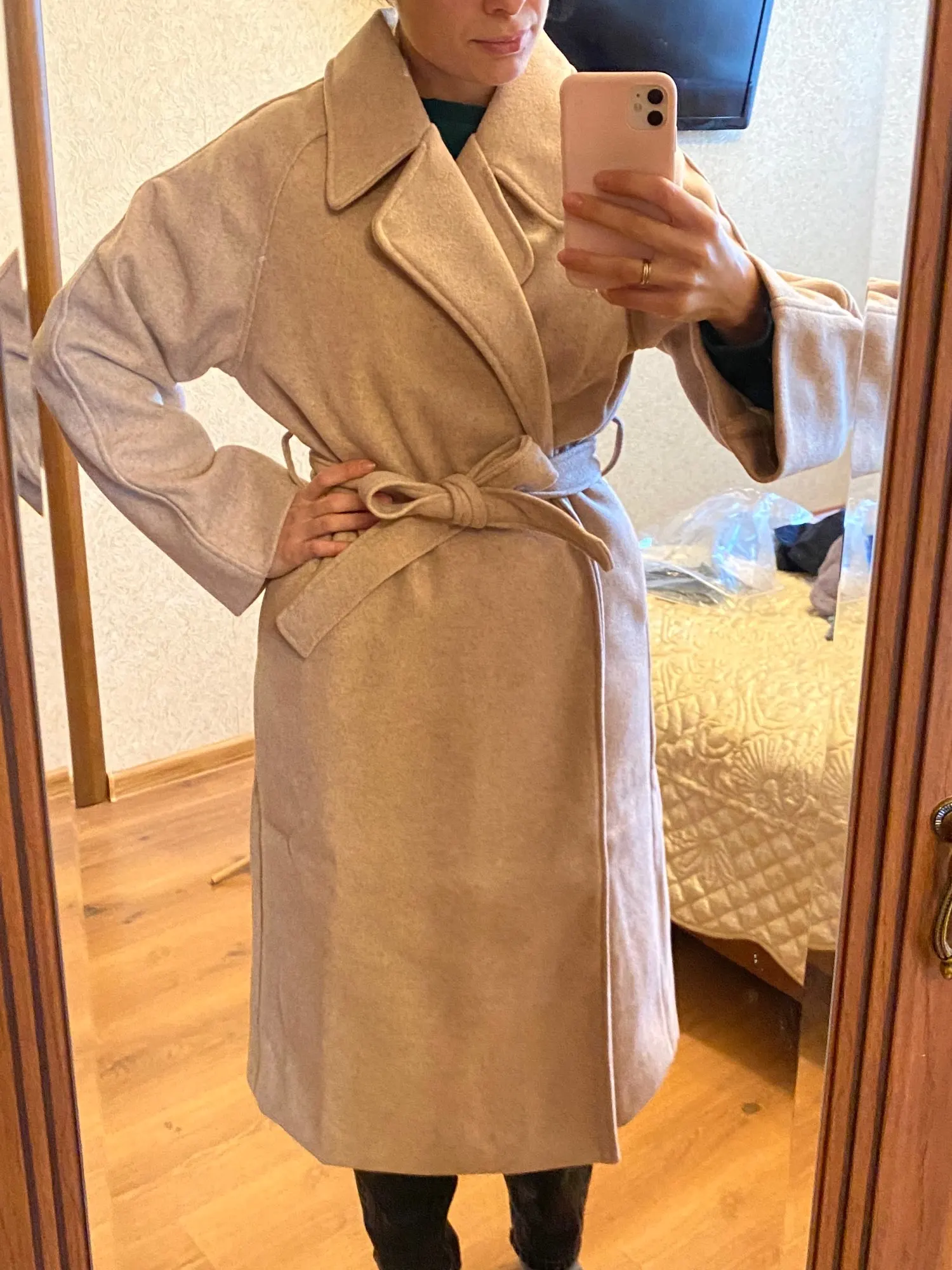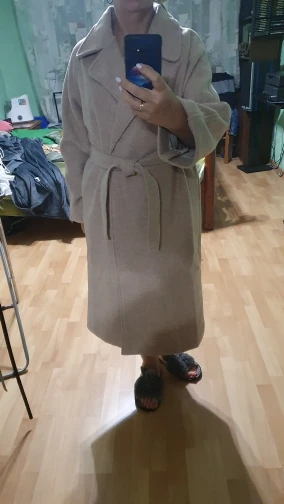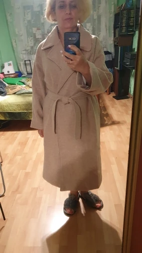 Пальто отличное. Достаточно тёплое, на осень, думаю градусов до 10. Качество хорошее, швы все ровные, нитки не торчат, есть подкладка. На 48 размер смотрится как небольшой оверсайз, боялась за длину, мой рост 173 - где-то до середины икры, мне коротковат рукав, но не критично. Единственное шлейки для пояса у меня были выше талии, и я их отпорола, просто подвязываю поясом или ремнём.
