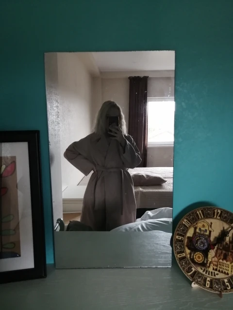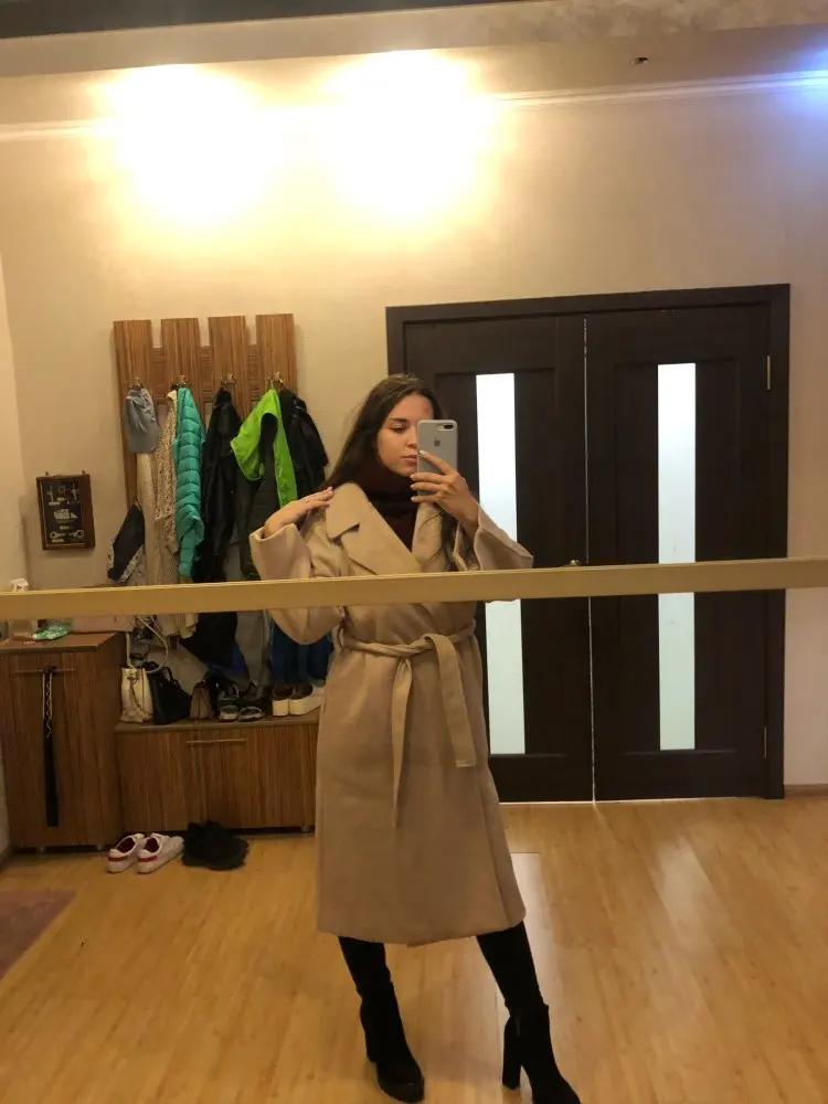 Абалденно пальто. Пришло в Москву за 8 дней в пункт самовывоза, качество отличное, нигде ничего не торчит, пальто само мягкое и не тонкое как тряпочка, тяжеленькое, то есть холодно в нем не должно быть, рукава широкие и вообще пальто очень уютное, приятное к тело. На моя рост 172 ниже колена чуть чуть, то есть длина отличная, взяла размер l на параметры он-87,об-95,от-65. Сфоткалась на скорую руку, как только открыла посылку, фото цвет неправильно передаёт немного