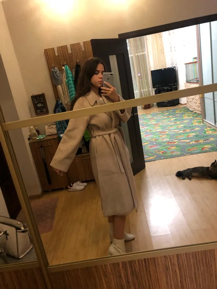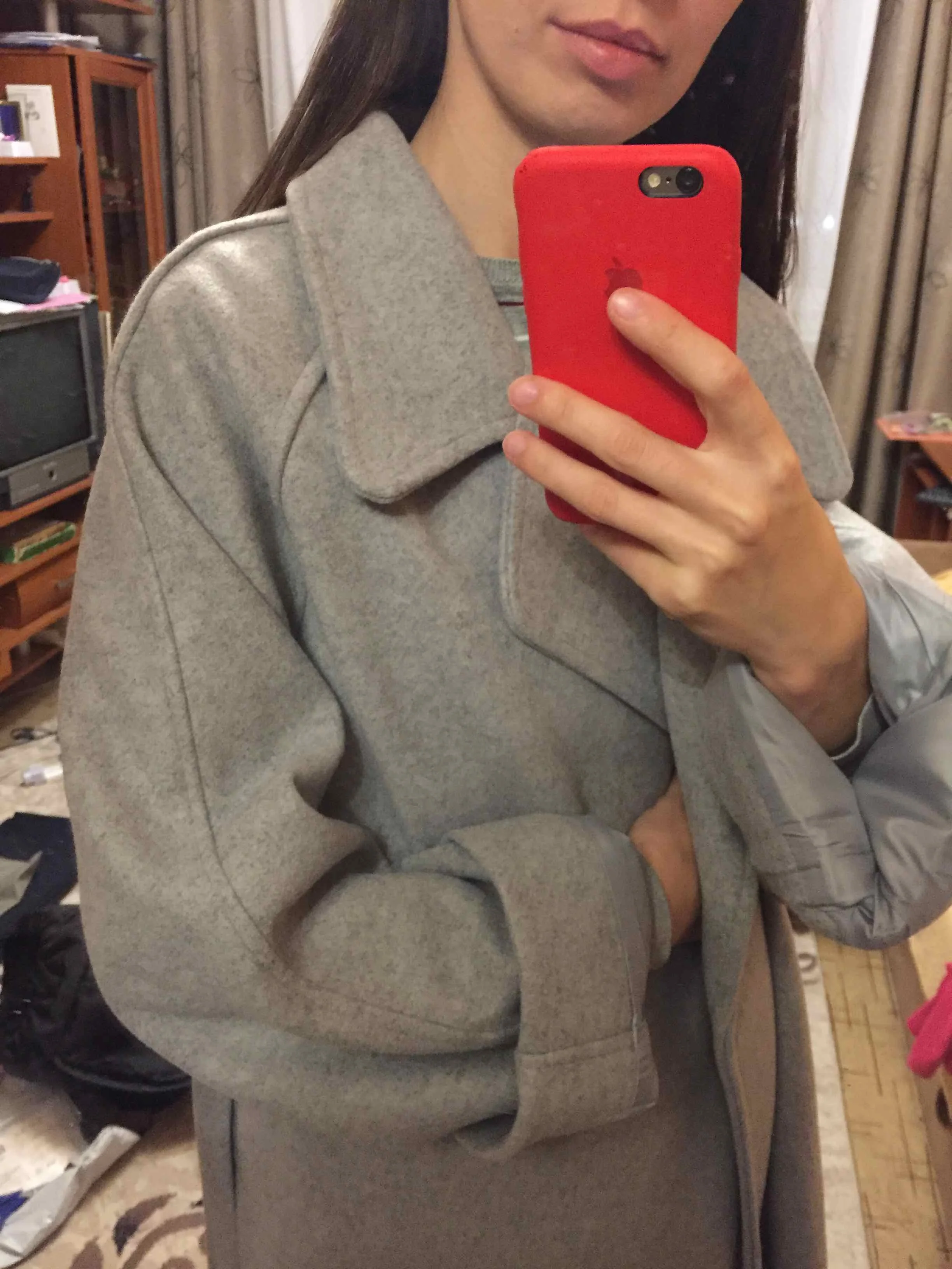Пальто понравилось, очень мягкое, уютное!) Надевала один раз - с тёплым свитером, во время быстрой езды на самокате не холодно в 10*С, благодаря объёму получится составлять многослойные образы и я, возможно, даже буду носить зимой. На свой S по отзывам взяла L - подошло отлично. До Москвы дошло быстро (около 10 дней) в пункт выдачи ДПД. Фотографии только такие :)