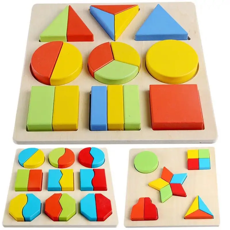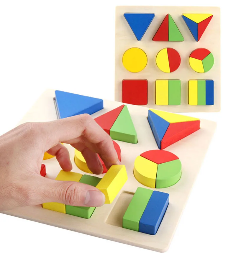 Детские игрушки 20 см Деревянные Монтессори красочная геометрическая форма Развивающий Пазл доска игрушки для детей раннего обучения Образование 3D головоломка