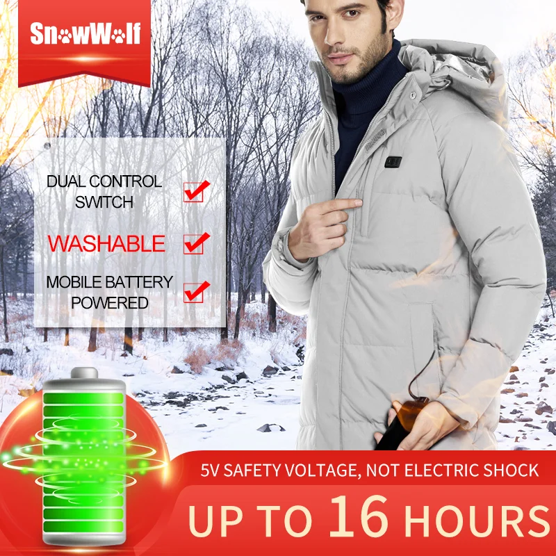 Зимняя куртка с подогревом SNOWWOLF для мужчин и женщин, одежда с электрическим подогревом, термальное пальто для рыбалки и пеших прогулок