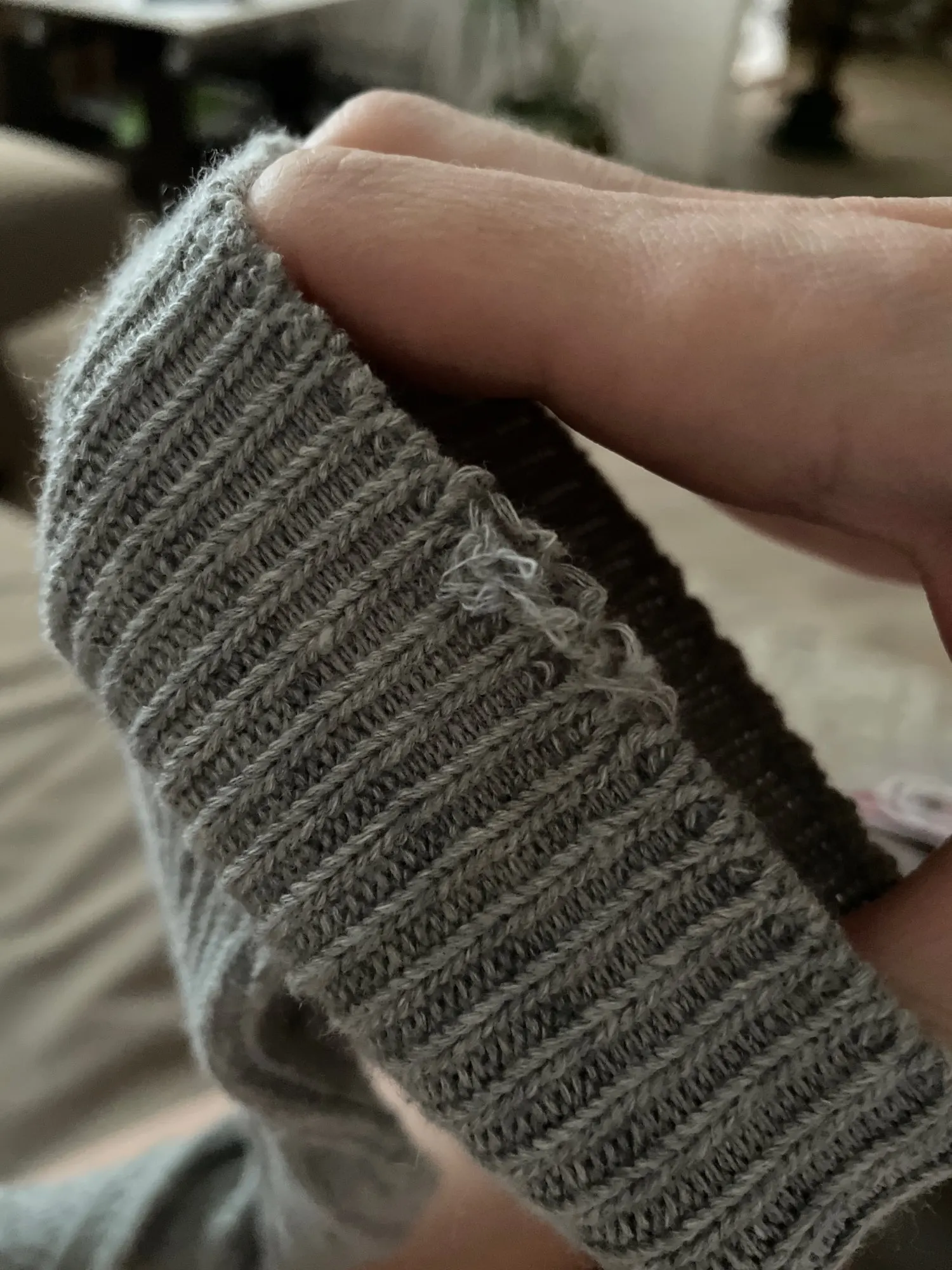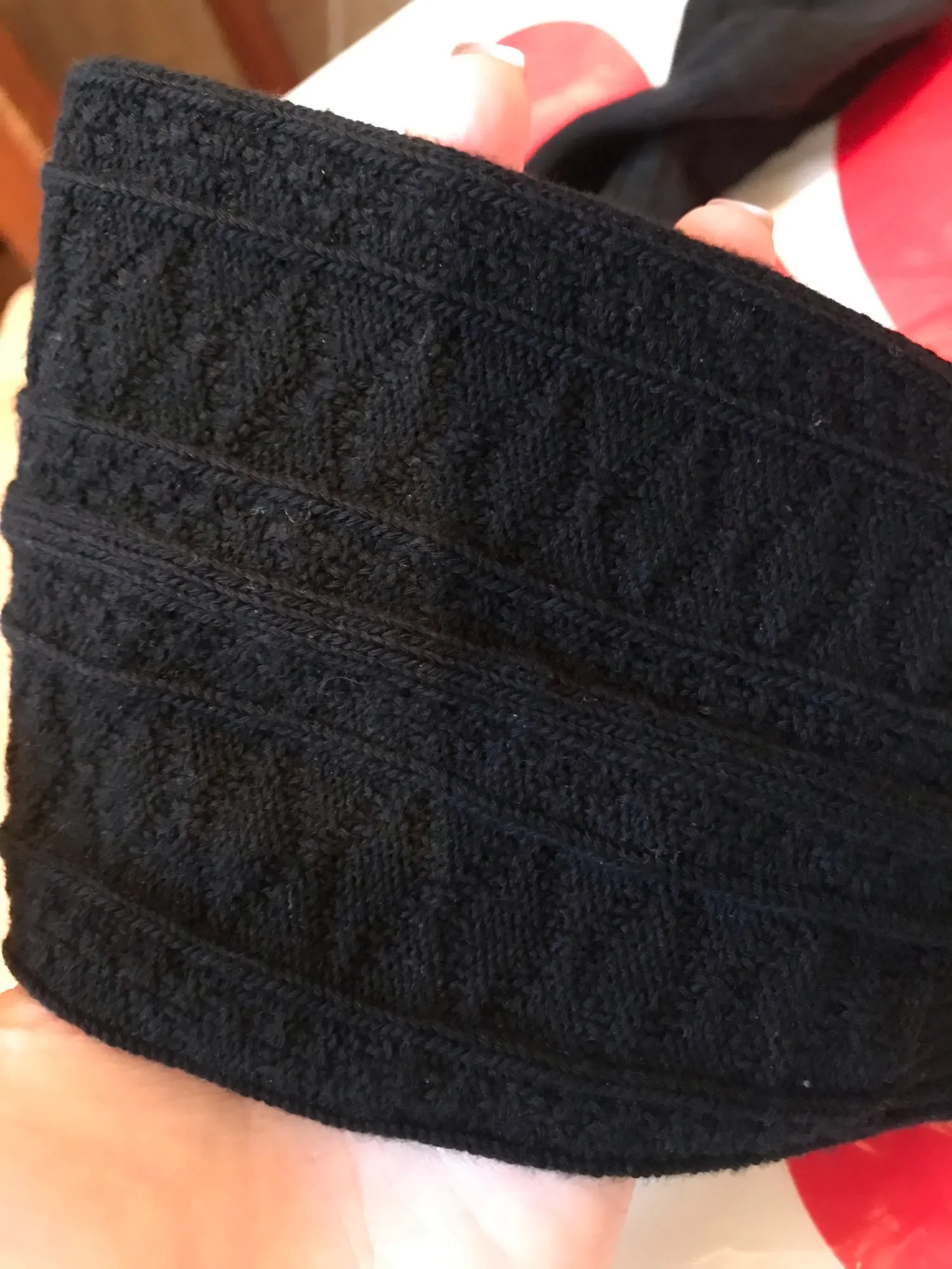 Чулки приятные, но как их буду носить - пока загадка. Скорее всего, пришью силиконовые резинки, иначе сползают. На верхней границе резинки объём бедра у меня 51 см, и резинка перетягивает ногу довольно ощутимо. Обнаружены встроенные резинки (см. фото), при перерезании которых верх перестает давить, а при их вытягивании край начинает как будто немного распускаться (видны петли), но в растянутом состоянии выглядит вполне целым.