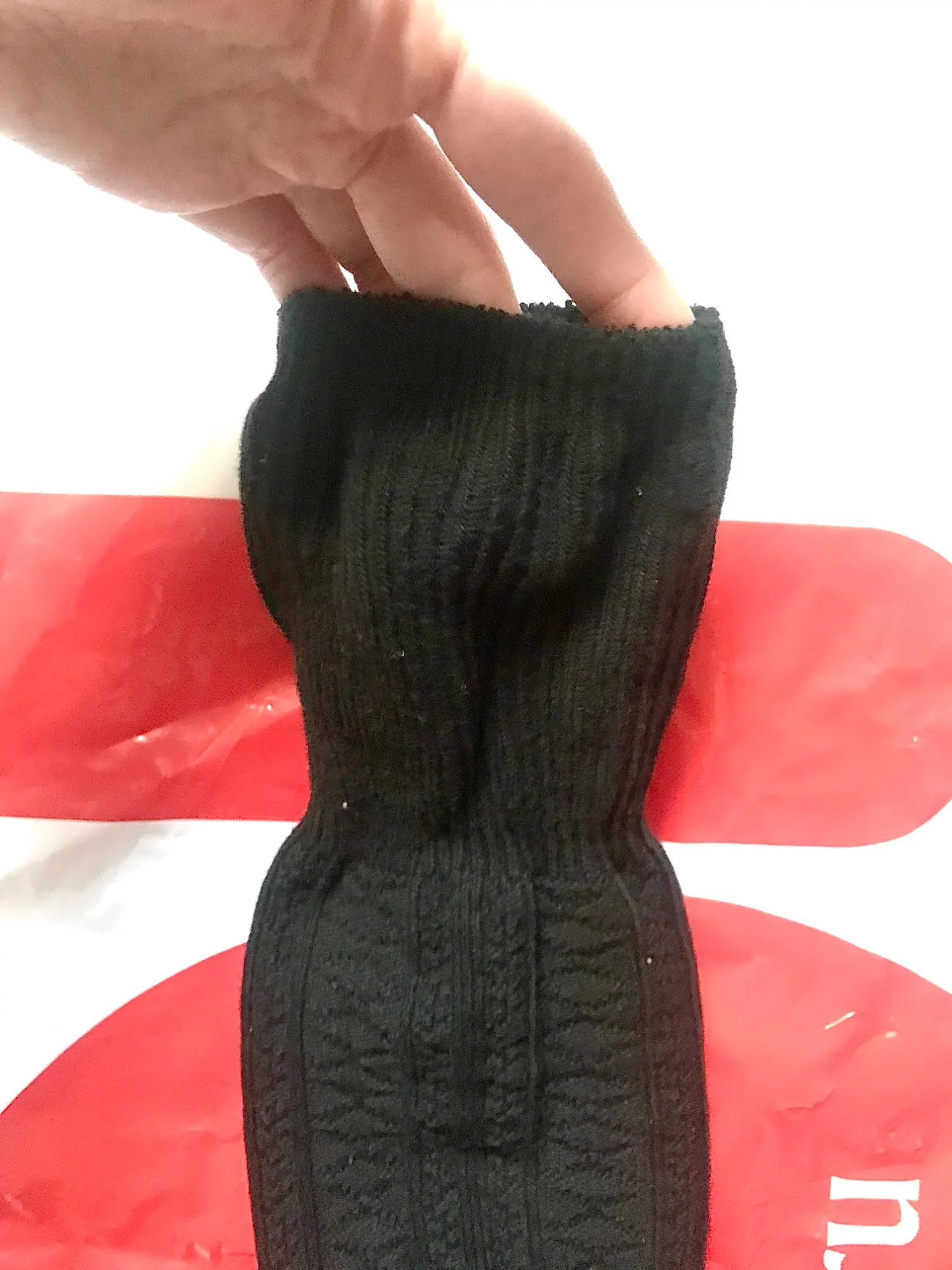 Гетры очень качественные, полностью соответствует описанию. Доставка в Россию была супер быстрой, с продавцом не общалась. Никакого запаха, торчащих ниточек, всё равно и аккуратно. Буду ещё заказывать. Спасибо продавцу и доставке. Однозначно рекомендую! Мой рост 180 см и по фото видно насколько они выше колена.