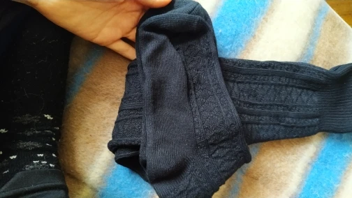 Доставка 12 дней до МО. Носки клёвые, тёплые, явно в составе не только синтетика. На фото-рост 165, обхват ноги в месте резинки=38см, на ногу чуть пошире тоже подойдёт, в районе стопы вполне свободно, но не болтаются на 36 размер ноги. Фото: они равномерные, просто натянуты абы как. Резинка держит вполне хорошо. Нитки нигде не торчат. 3фото-подвернуты. В общем, рекомендую
