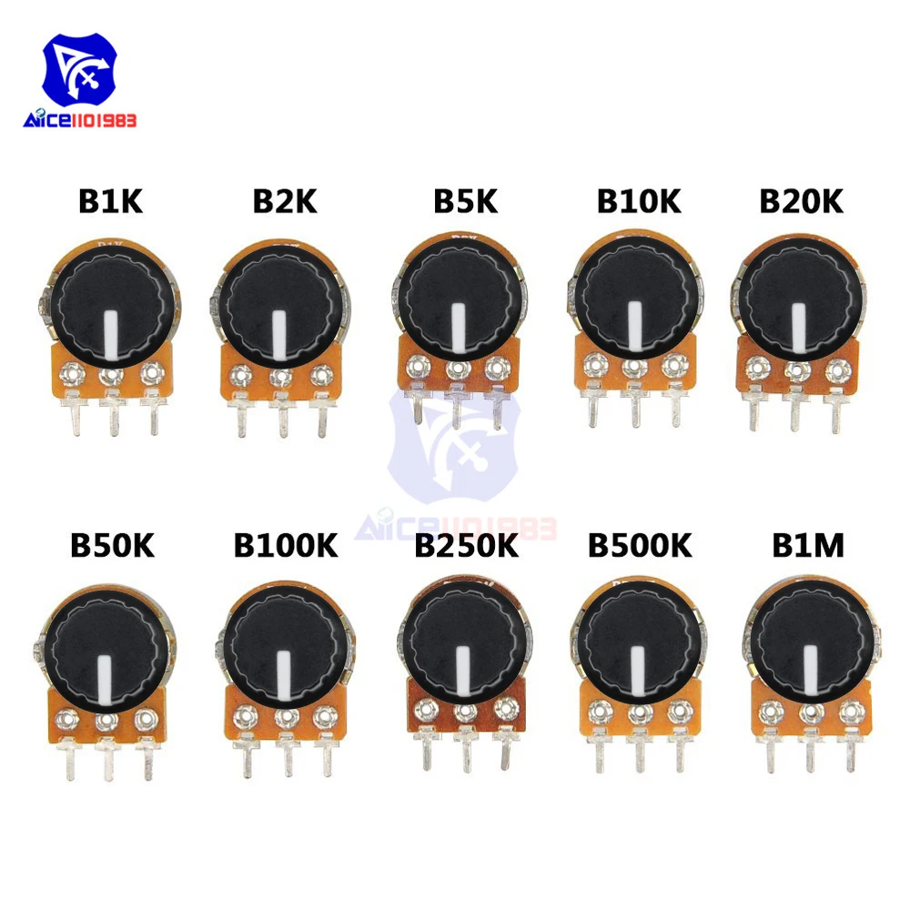 Потенциометр diymore 10 шт.лот, резистор 1K 5K 10K 20K 50K 100K 500k Ом, 3 контакта, линейный конический поворотный потенциометр для Arduino
