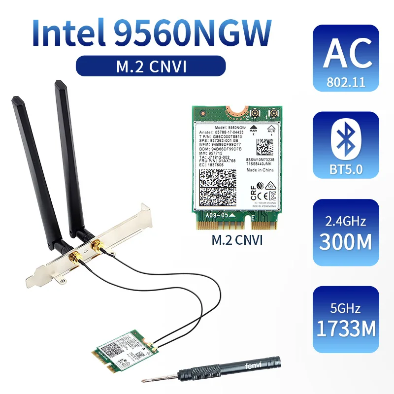 Двухдиапазонная Беспроводная связь для Intel 9560AC 9560NGW 1,73 Гбитс, Wi-Fi 802.11ac, для Bluetooth 5,0 Wlan-карты с антеннами MHF4 U F.L Windows 10