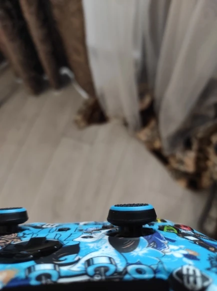 Колпачки приятные. Легко надеваются и снимаются. Но тут можно расценивать как + и -. Так как если человек сильно давит на стики то могут слетать. У меня такого не происходит а вот если жена села поиграть то слетают с легкостью.
