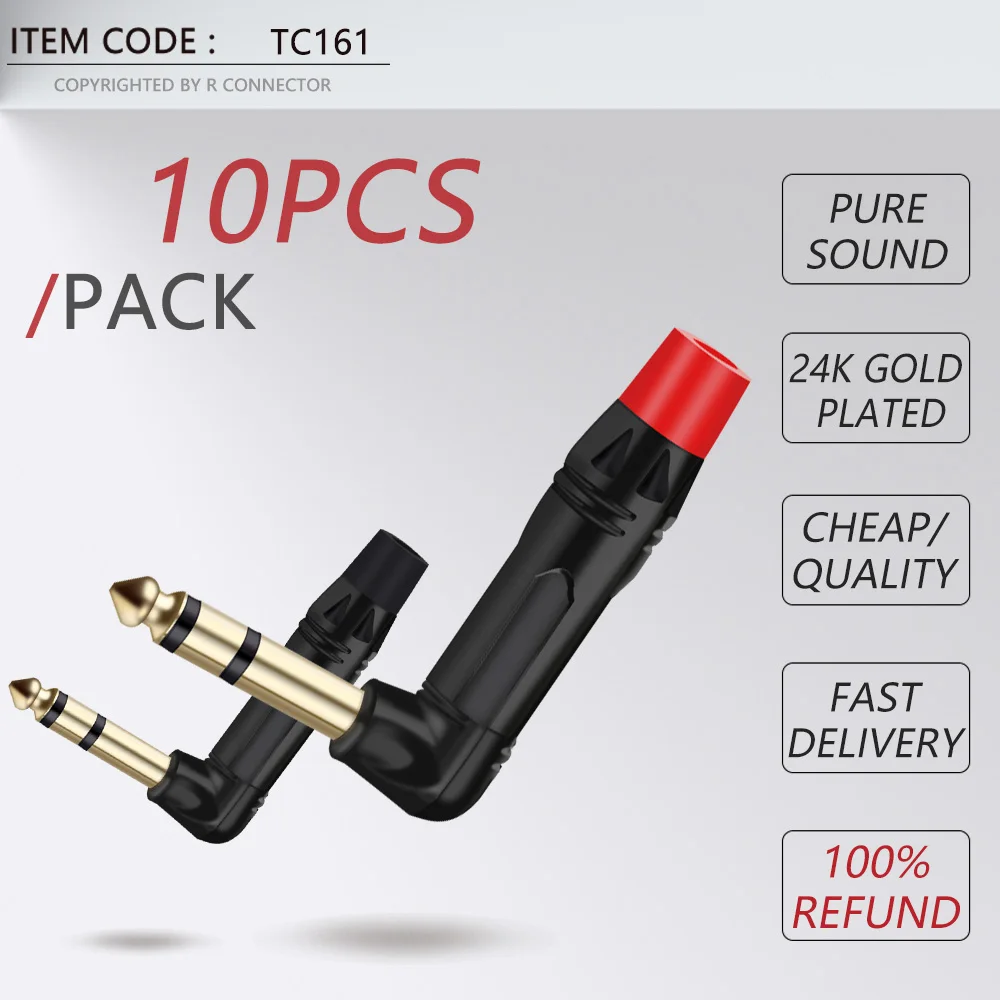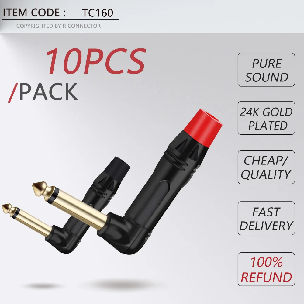 10PCS правый угол Jack 6,35 мм моноСтерео 6,3 мм мужской разъем латунь Позолоченные 14 дюймов разъем для подключения микрофона
