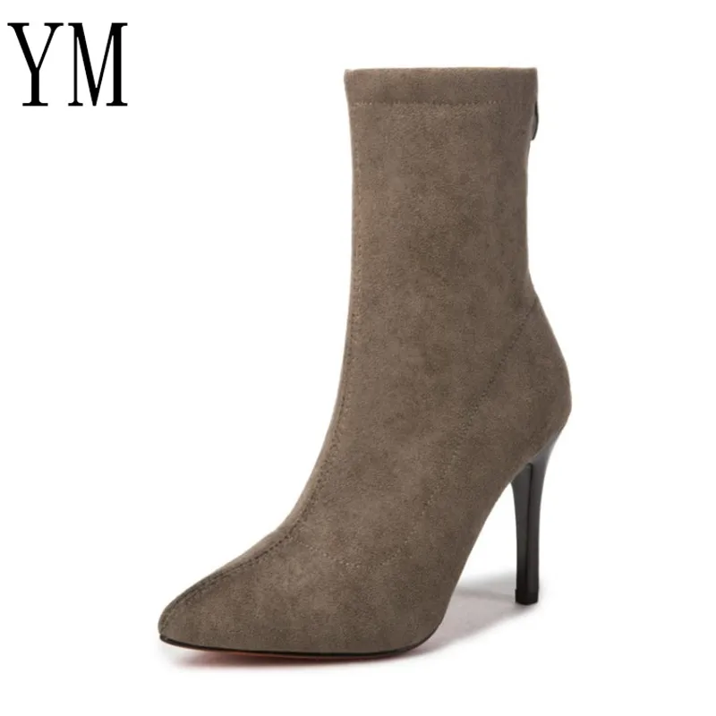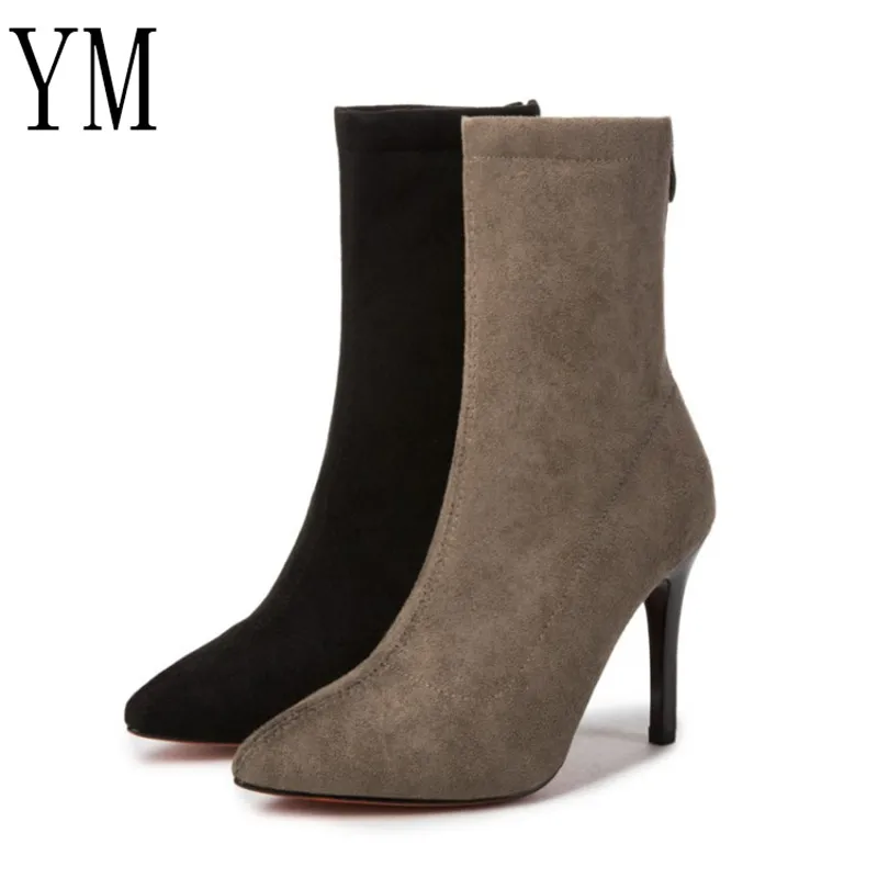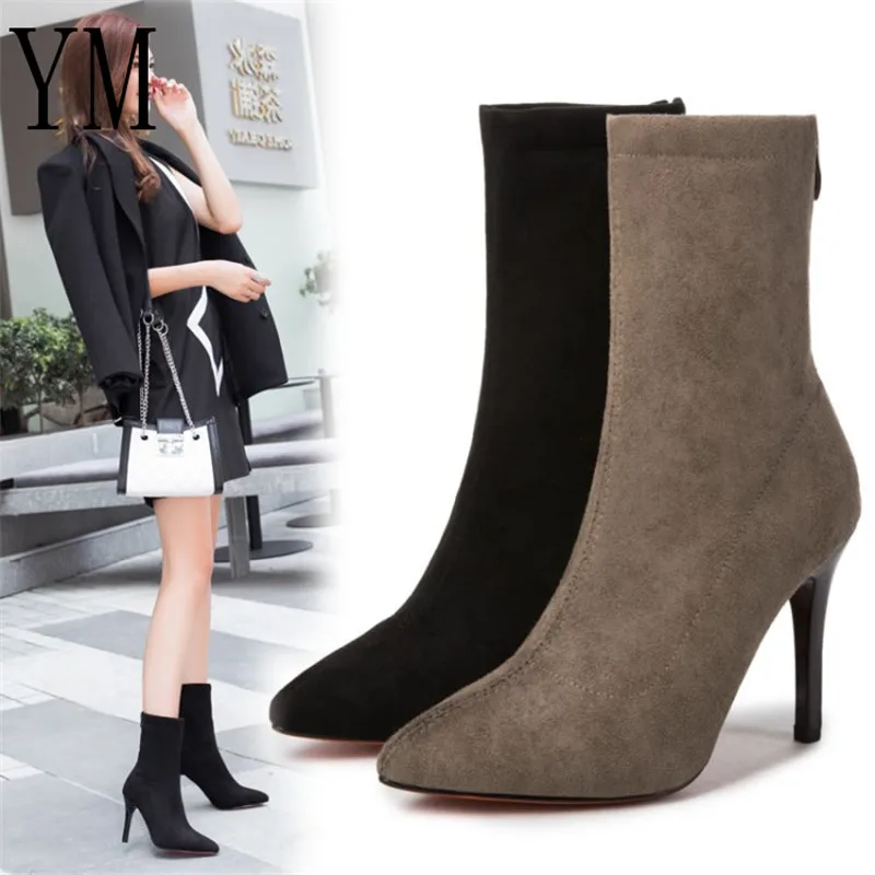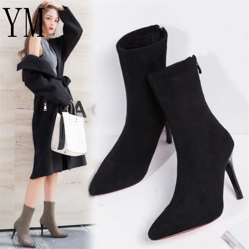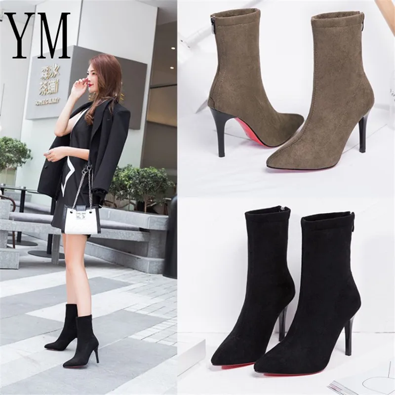 Сексуальные женские туфли на высоком каблуке с ремешком на щиколотке, осенние туфли из флока