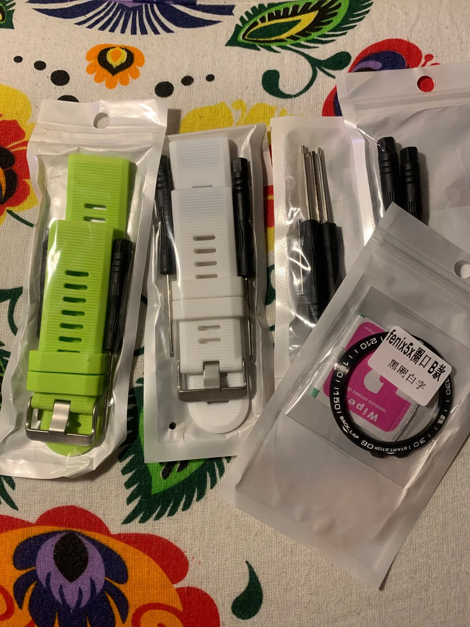 Приобретается в белом цвете для Garmin Fenix 5 S. Он пришел в сумку с двумя отвертками, которые я не знаю, что они для, если ремешок подходит с зажимом. Идеально сидит и выглядит хорошо, но силикон прочнее, а зажим гораздо свободнее, чем у оригинала и других, которые у меня есть, несмотря на то, что я не думаю, что это будет выйти, так как в то же время вам придется его выкинуть. Я буду молиться, чтобы не потерять часы.