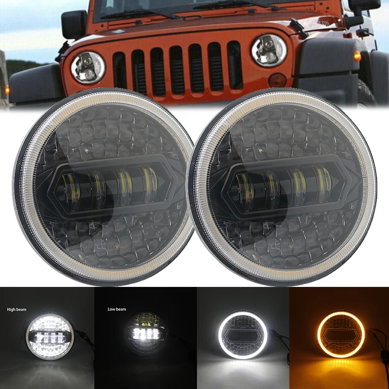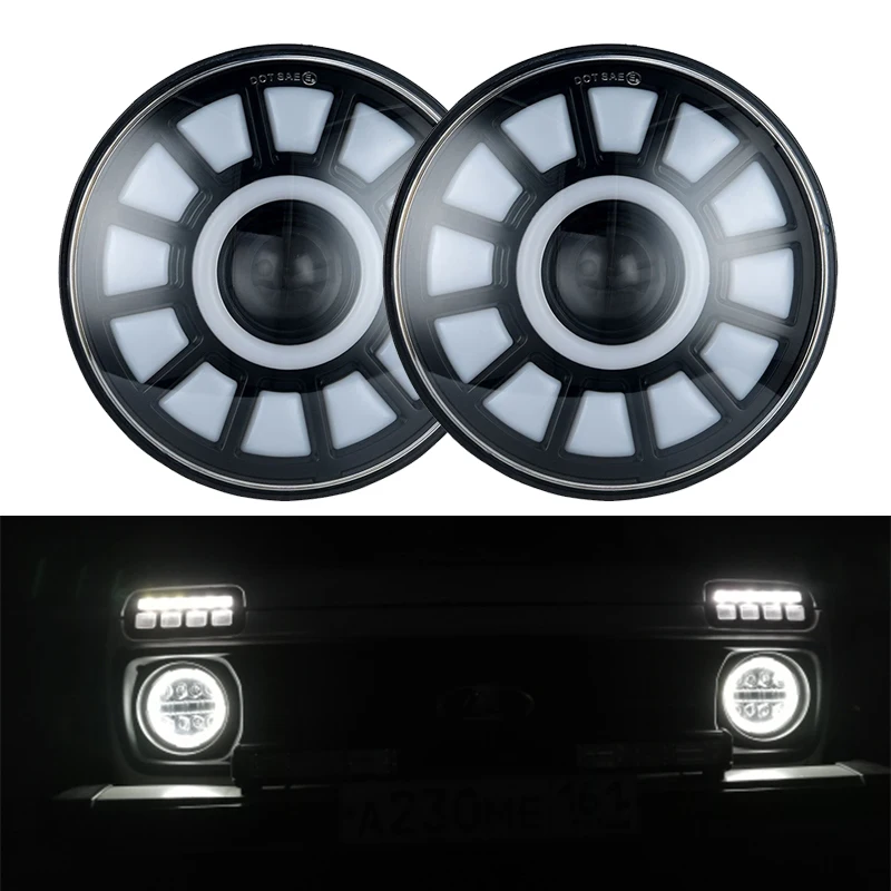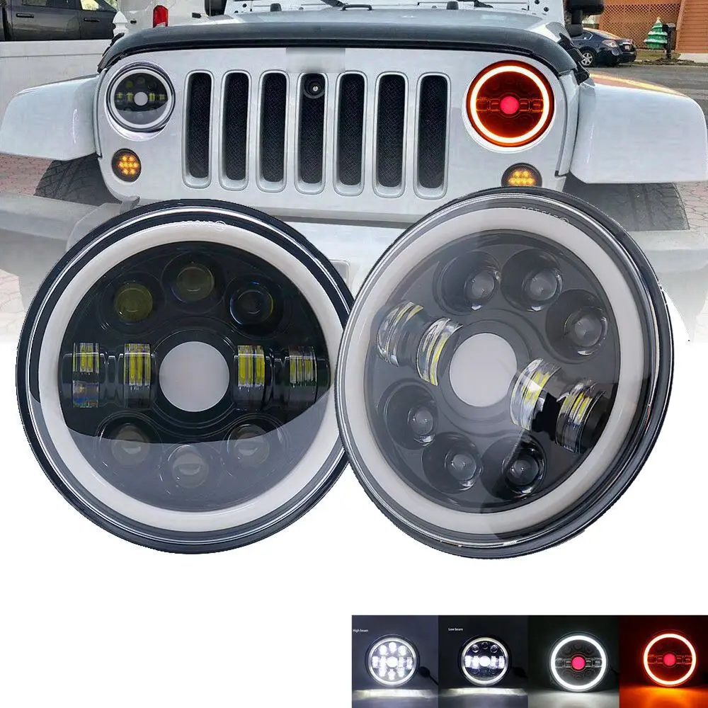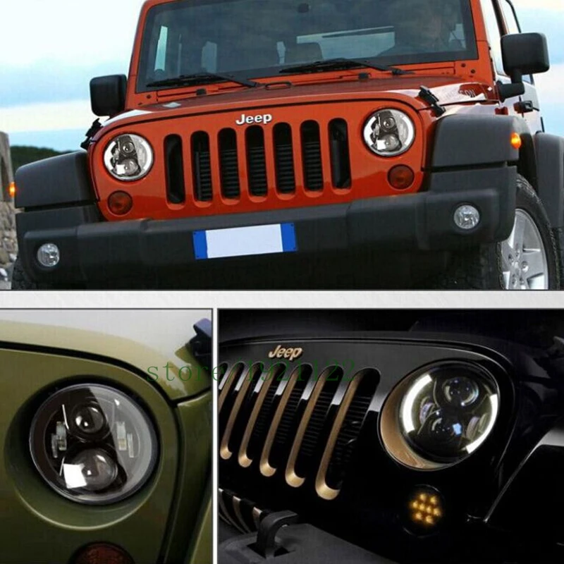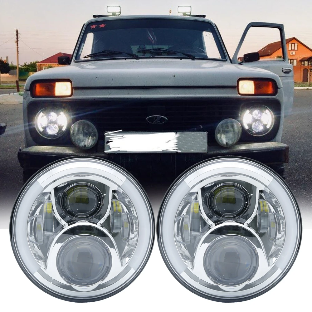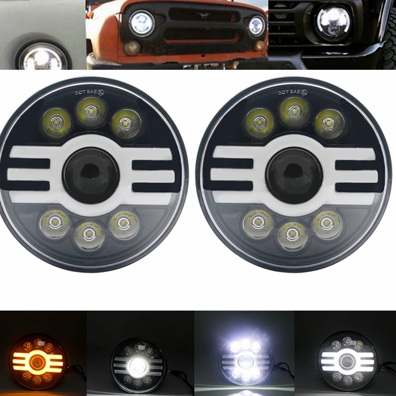 Фары светодиодсветодиодный, 2 шт., 7 дюймов, с гало-кольцом, янтарным указателем поворота для lada niva 4x4, suzuki samurai, 7 дюймов, ДХО, гало, фары для ваз 2101