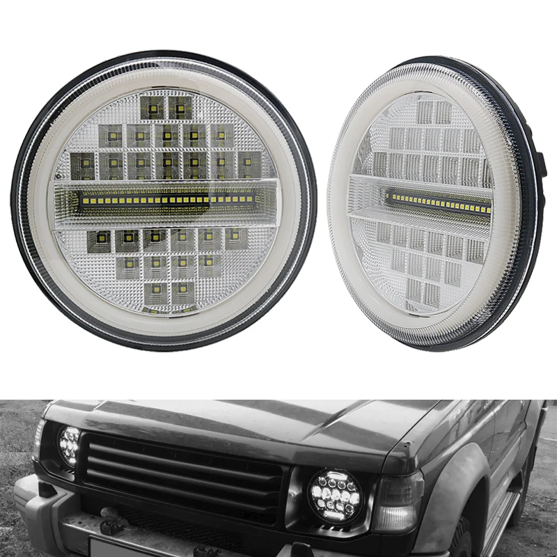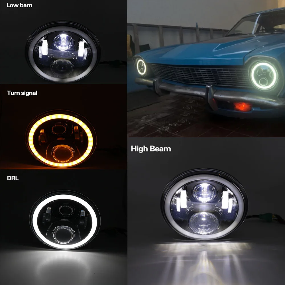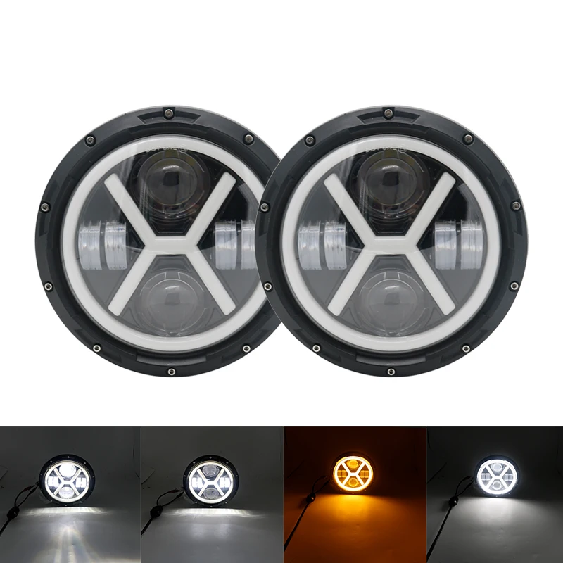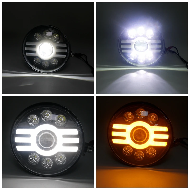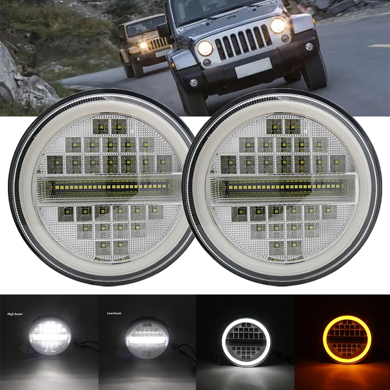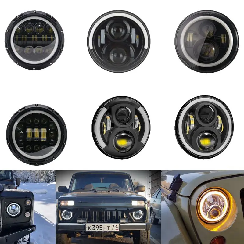 Фары светодиодсветодиодный, 2 шт., 7 дюймов, с гало-кольцом, янтарным указателем поворота для lada niva 4x4, suzuki samurai, 7 дюймов, ДХО, гало, фары для ваз 2101
