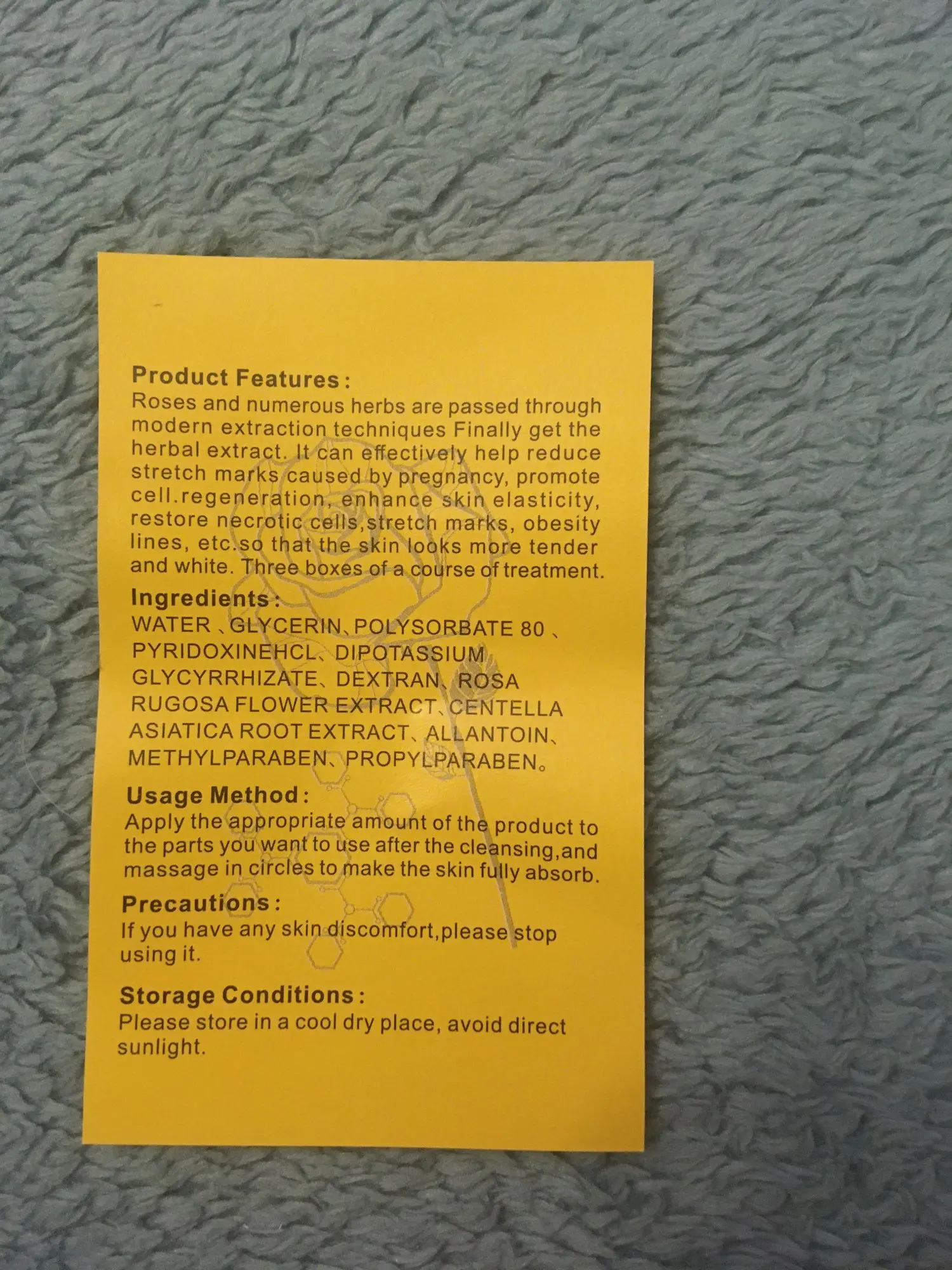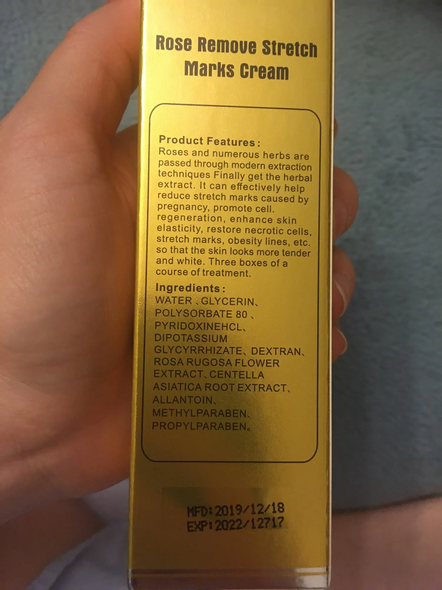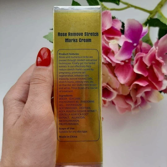 Крем от растяжек с экстрактом розы #Oedo Доставка быстрая, трек отслеживался. Коробочка в золотом цвете пришла запечатанная в слюду. Информация на английском языке. Объем средства 40 грамм Роза и экстракты трав помогут эффективно уменьшить растяжки вызванные беременностью или резким изменением веса, способствуют регенерация на клеточном уровне, повышает упругость, восстановливает некротические клетки. Три коробки курс лечения. Ингредиенты: вода, глицерин, полисорбат 80,пиридоксин, ГЛИЦИРРХИЗАТ,ДЕКСТРАН, роза РАГОСА ЦВЕТОЧНЫЕ ЭКСТРАКТЫ, Центеллы АЗИАТА КОРЕНЬ ЭКСТРАКТ ,АЛЛАНТОИН Туба с защитной алюминиевой мембраной. Крем однородной белой текстуры, сначала густой, но с соприкосновением к коже тает,легко распределяется и быстро впитывается. Следов на одежде не оставляет. Крем устраняет не только стрии, но и борется с рубцами, улучшает цвет кожи и просто помогает в омоложение кожи.