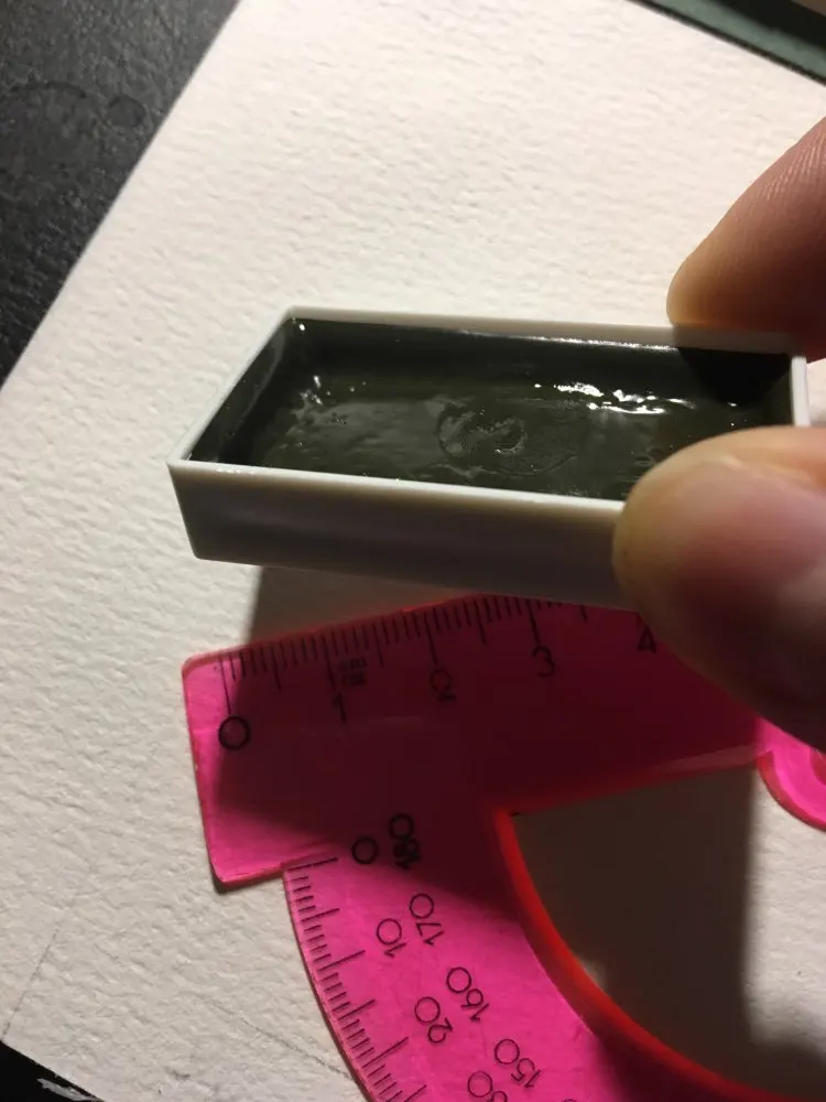 Заказ доехал в Подмосковье за 10 недель (долго висел на таможне). Описанию соответствует, без дефектов, коробка не помялась. Краски качественные, легко набираются на кисть; несколько менее прозрачные, чем европейская акварель. Синий и - особенно - фиолетовый цвета склонны распадаться на оттенки при большом количестве воды и выраженной фактуре бумаги.
